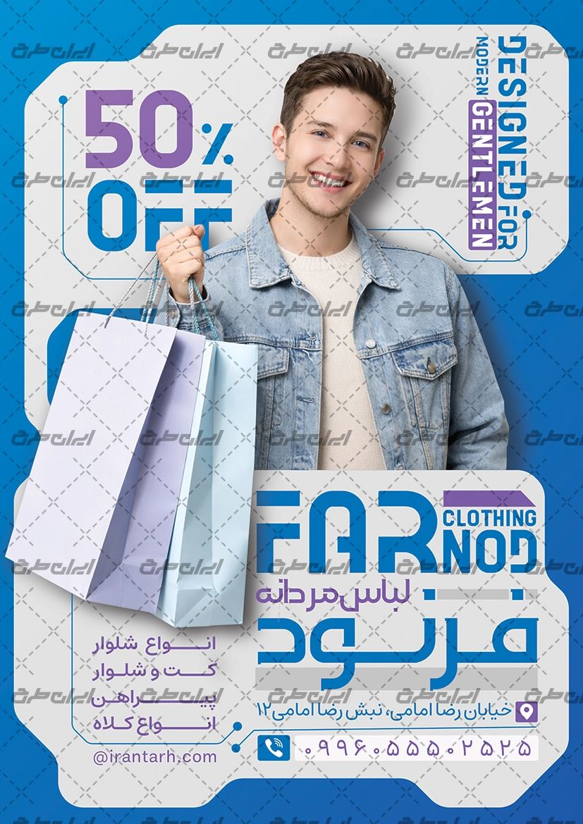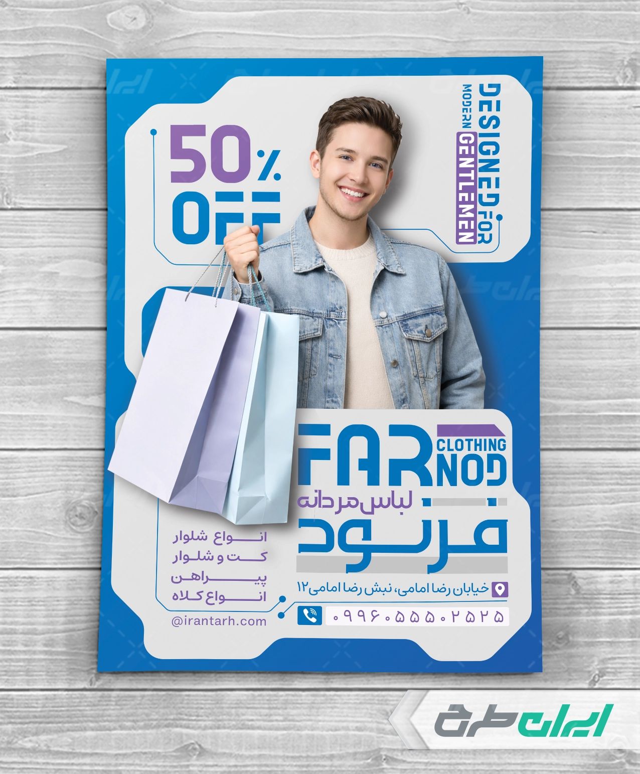 - طراحی ساده و کاربردی تراکت پوشاک مردانه