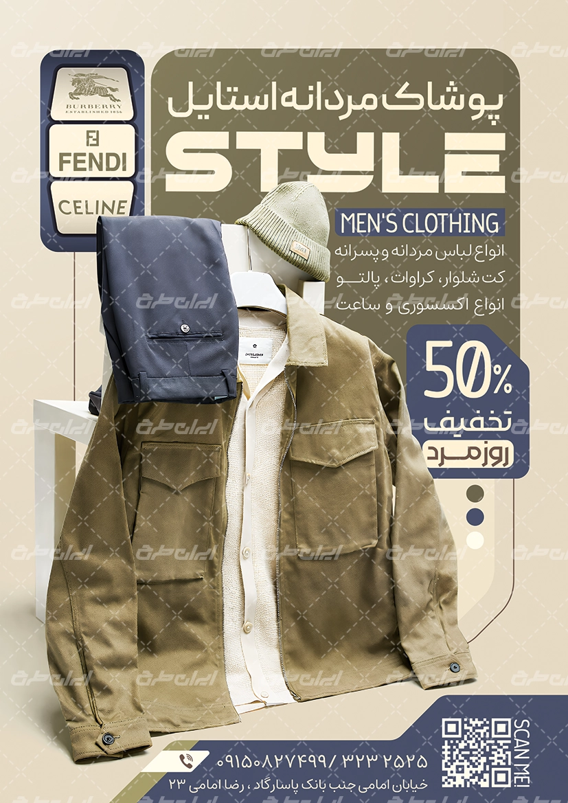 - طراحی ساده و کاربردی تراکت پوشاک مردانه