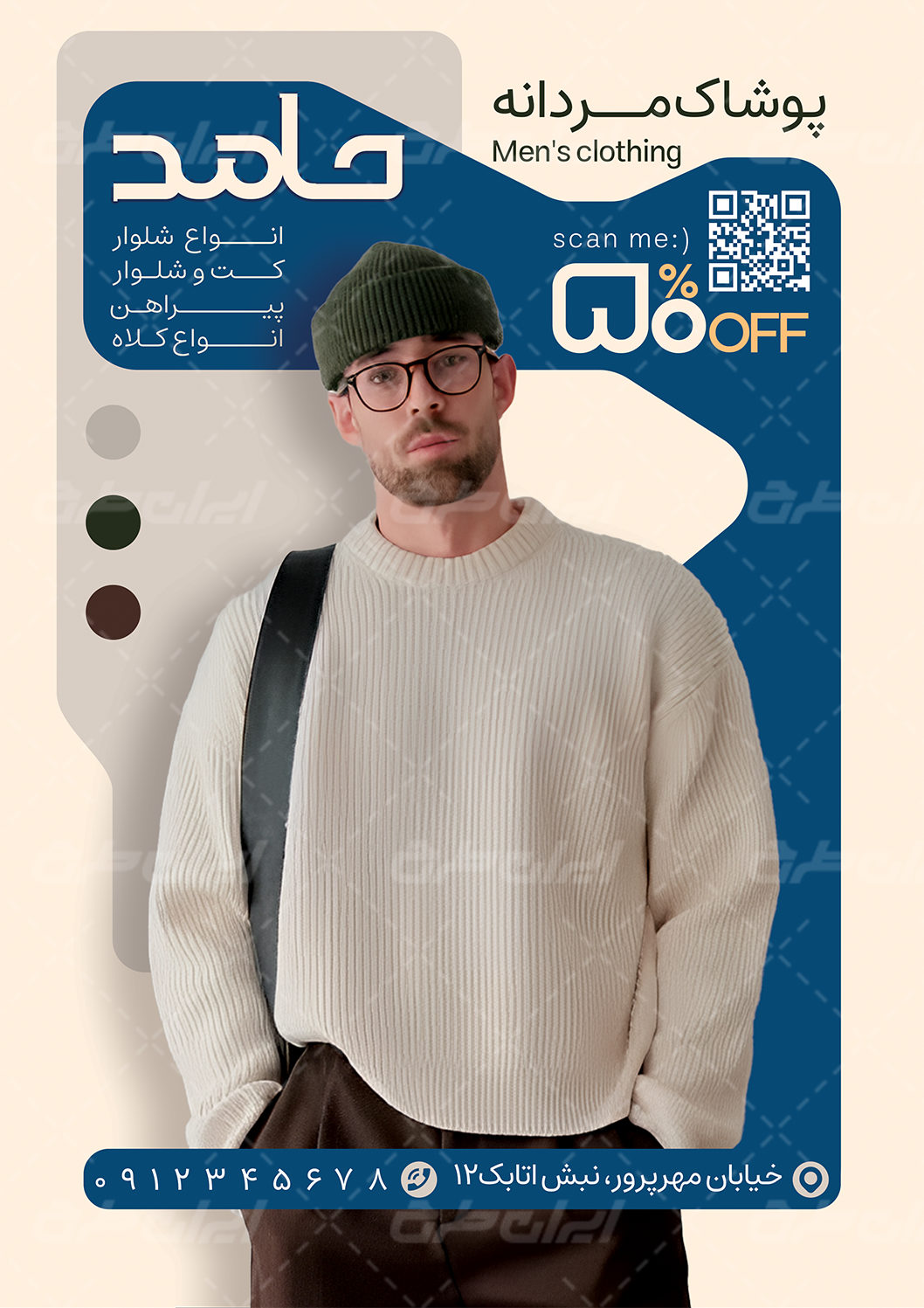 - استفاده از عکس با کیفیت پوشاک مردانه در طراحی تراکت