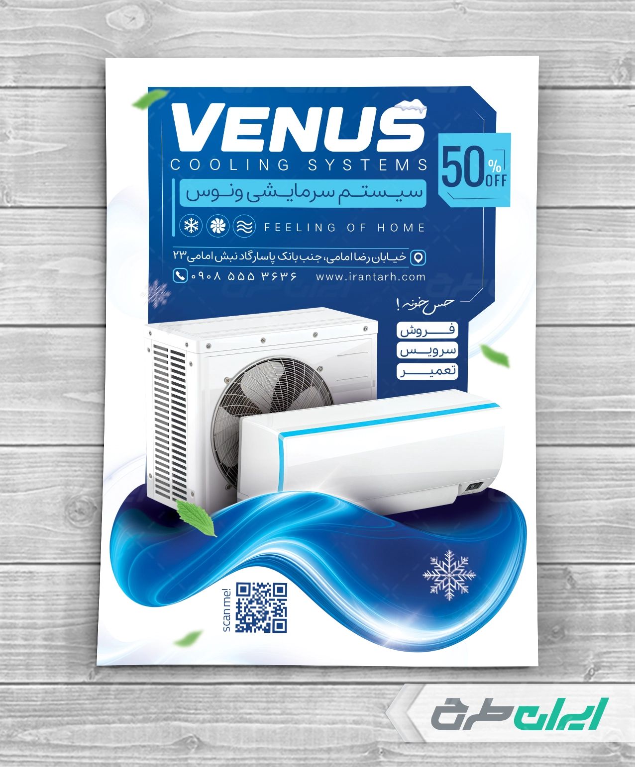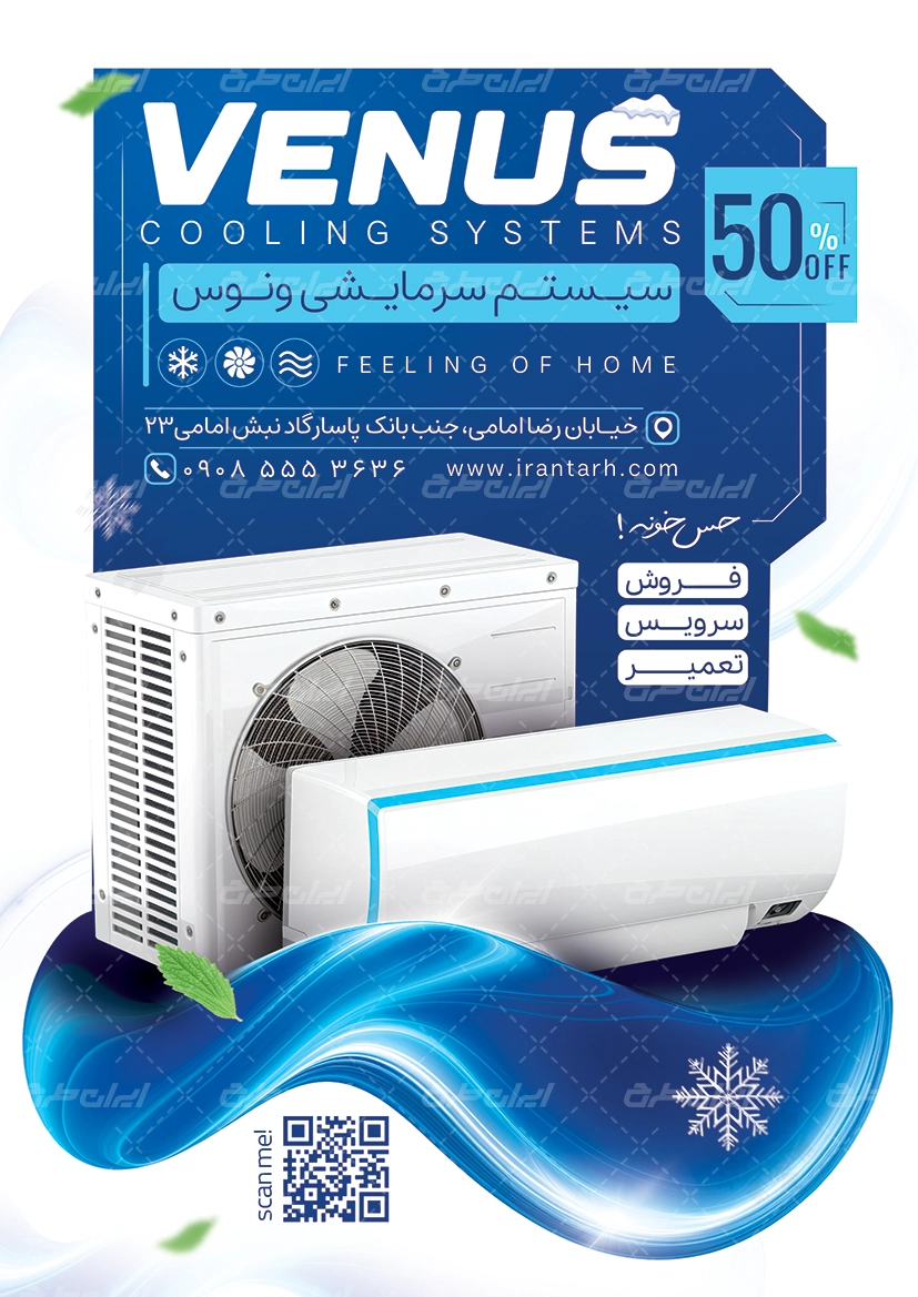 - طراحی شیک و کاربردی تراکت فروشگاه لوازم سرمایشی
