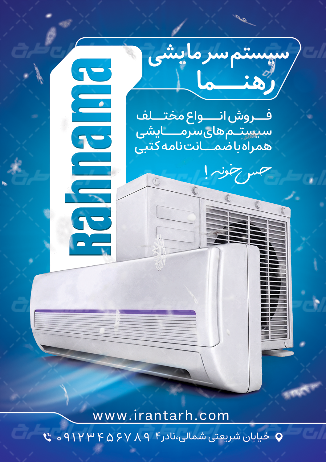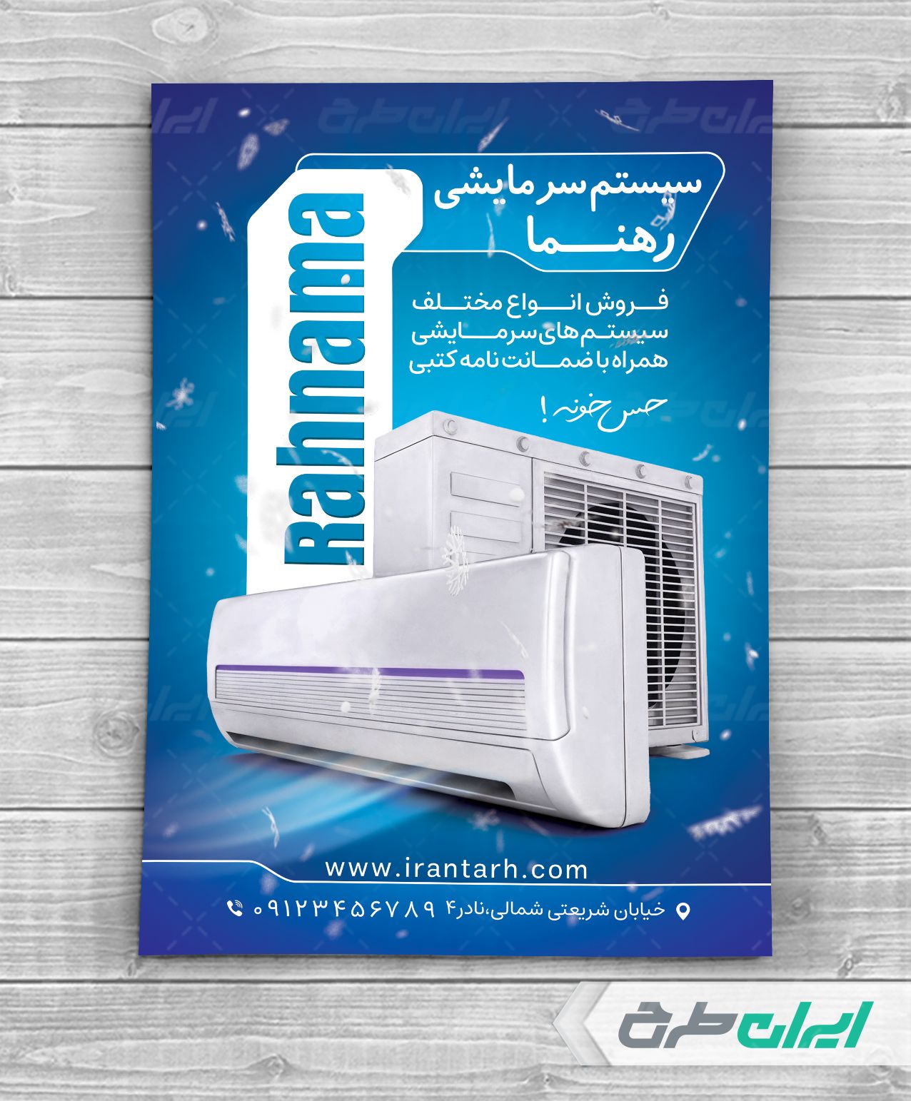 - طراحی شیک و کاربردی تراکت فروشگاه لوازم سرمایشی