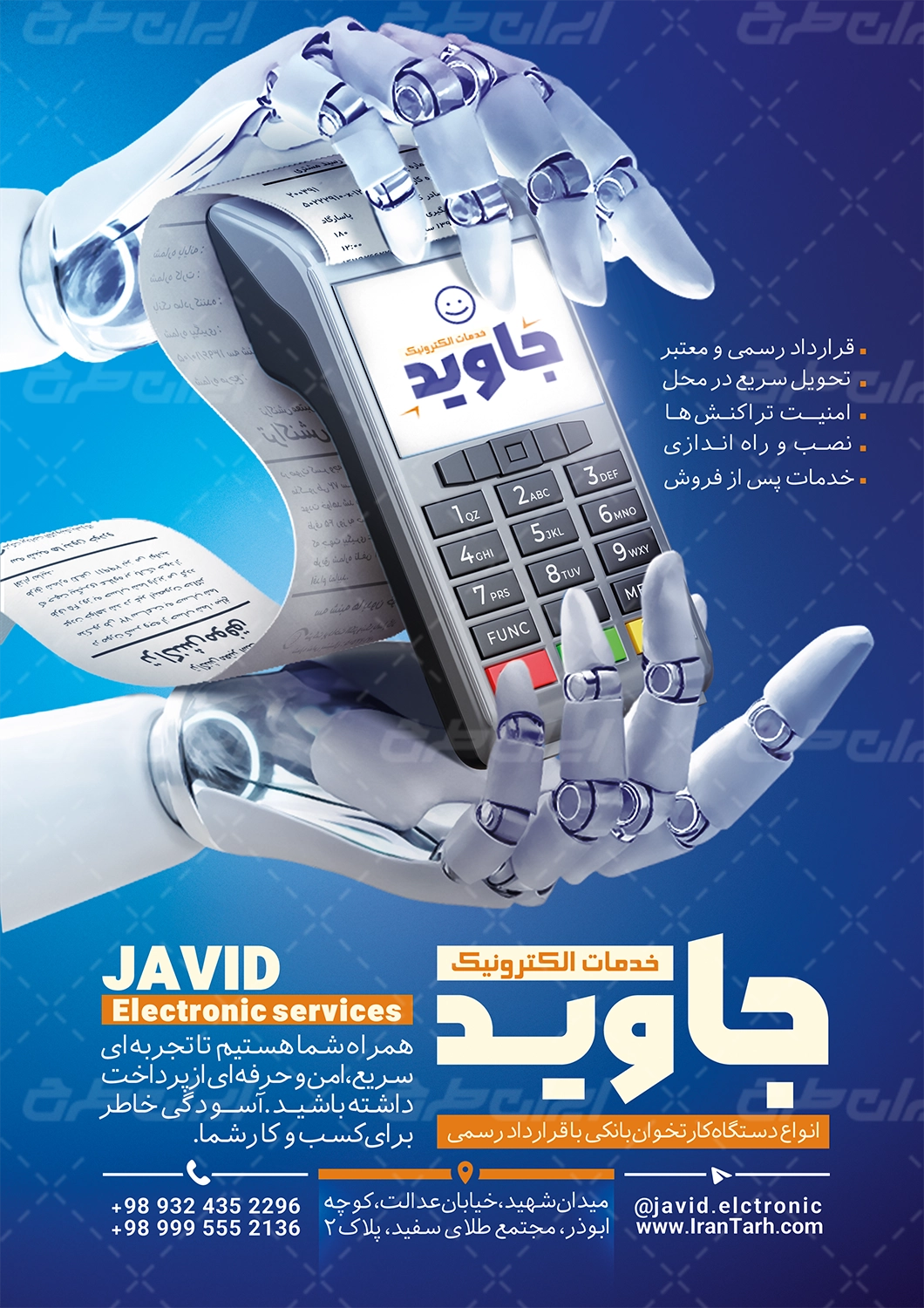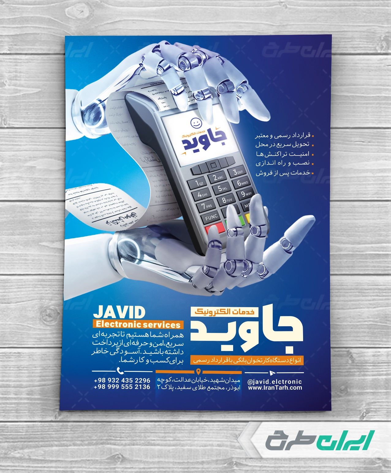 طرح تراکت خدمات دستگاه کارت خوان توسط تیم حرفه ای ایران طرح طراحی و در دسترس کاربران سایت قرار گرفته است.
