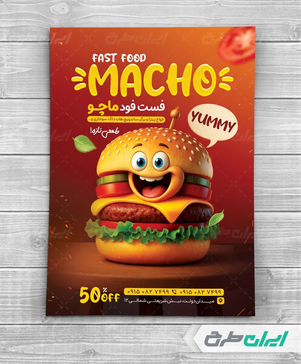 طرح تراکت فست فود شامل: