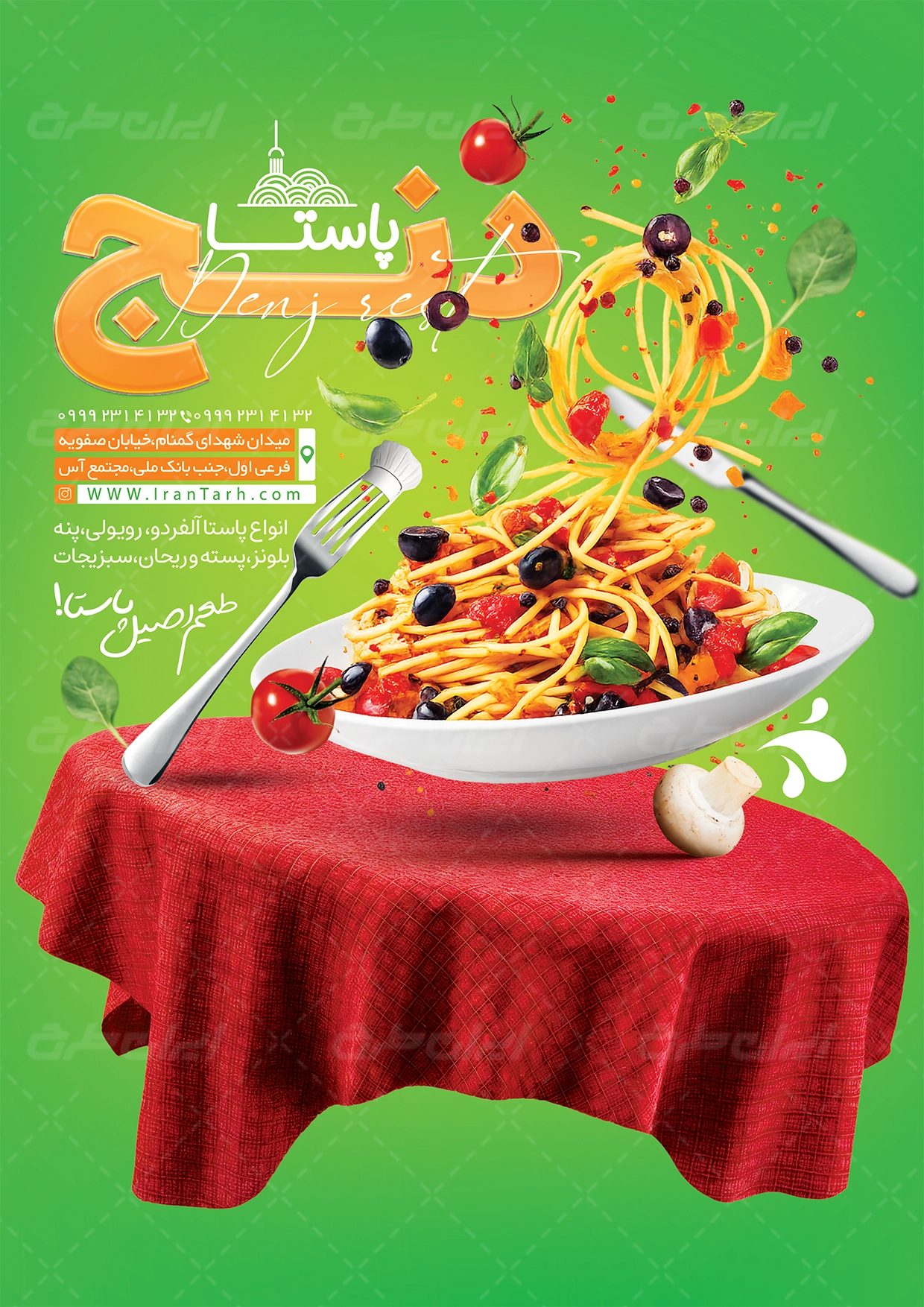 عکس با کیفیت پاستا، تصویر مرتبط با طرح فست فود، فست فود، لیبل و شیپ های کاربردی می باشد که توسط طراحان ایران طرح در نرم افزار فتوشاپ طراحی شده است.