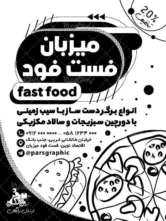 دانلود تراکت سیاه و سفید فست فود