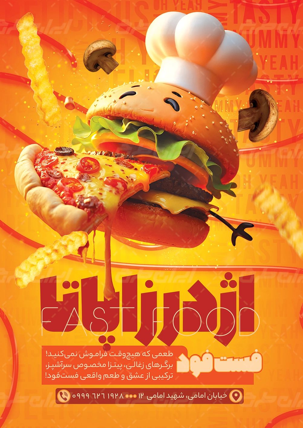 عناصر طرح تراکت فست فودی و پیتزا فروشی