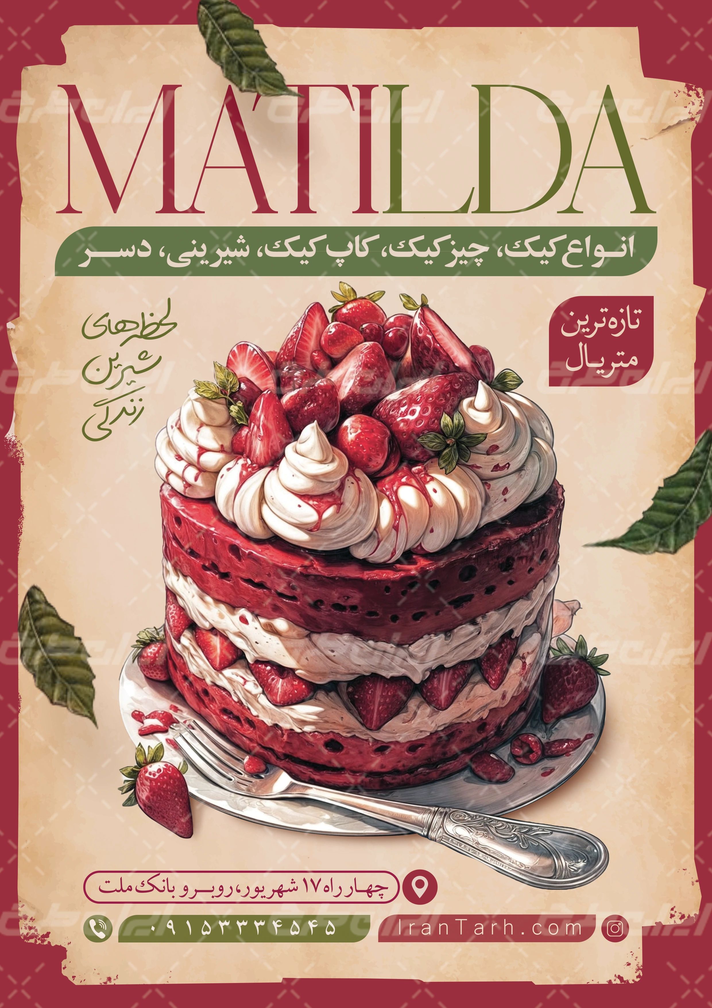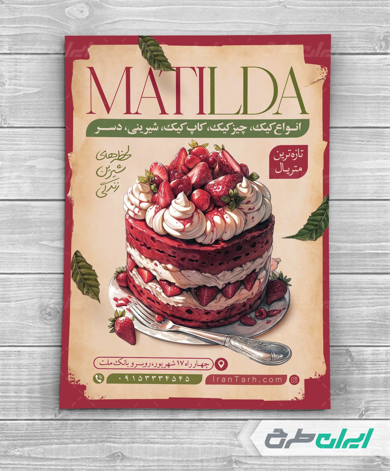 - استفاده مناسب از عکس با کیفیت کیک و شیرینی در طرح تراکت قنادی