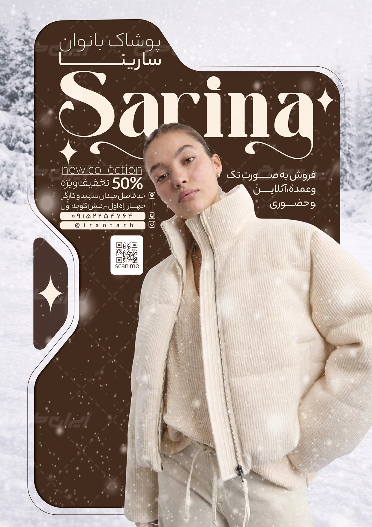 ایران طرح طرح تراکت فروشگاه پوشاک زنانه را جهت تبلیغات و بازاریابی این فروشگاه ها، طراحی و در دسترس کاربران سایت قرار داده است.