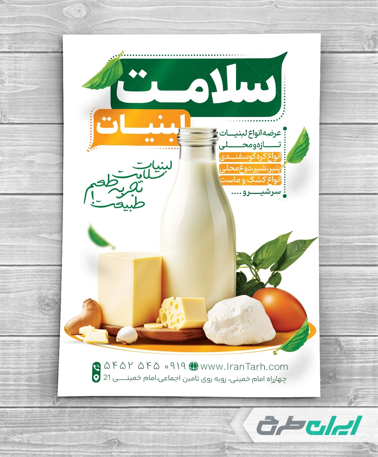 طرح تراکت فروشگاه لبنیات، توسط تیم ایران طرح جهت تبلیغات و بازاریابی این مشاغل طراحی و در دسترس کاربران سایت قرار گرفته است.