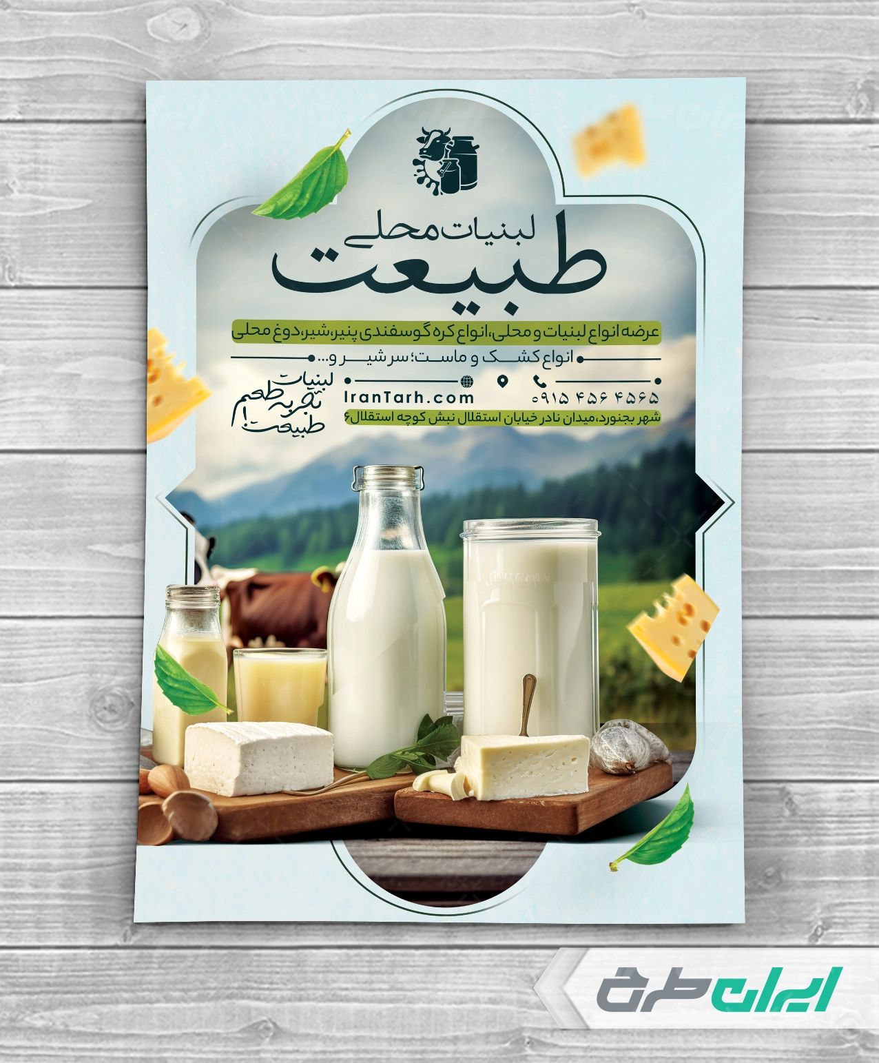 طرح تراکت فروشگاه لبنیات، توسط تیم ایران طرح جهت تبلیغات و بازاریابی این مشاغل طراحی و در دسترس کاربران سایت قرار گرفته است.