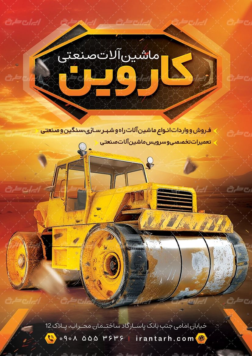 - استفاده از تصویر ماشین آلات صنعتی که مناسب طرح تراکت ماشین های راه سازی می باشد.