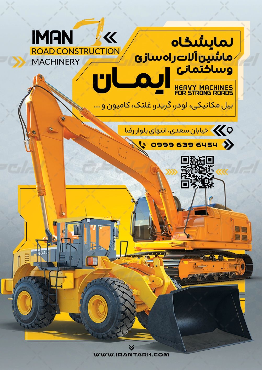 - استفاده از تصویر ماشین آلات صنعتی که مناسب طرح تراکت ماشین های راه سازی می باشد.