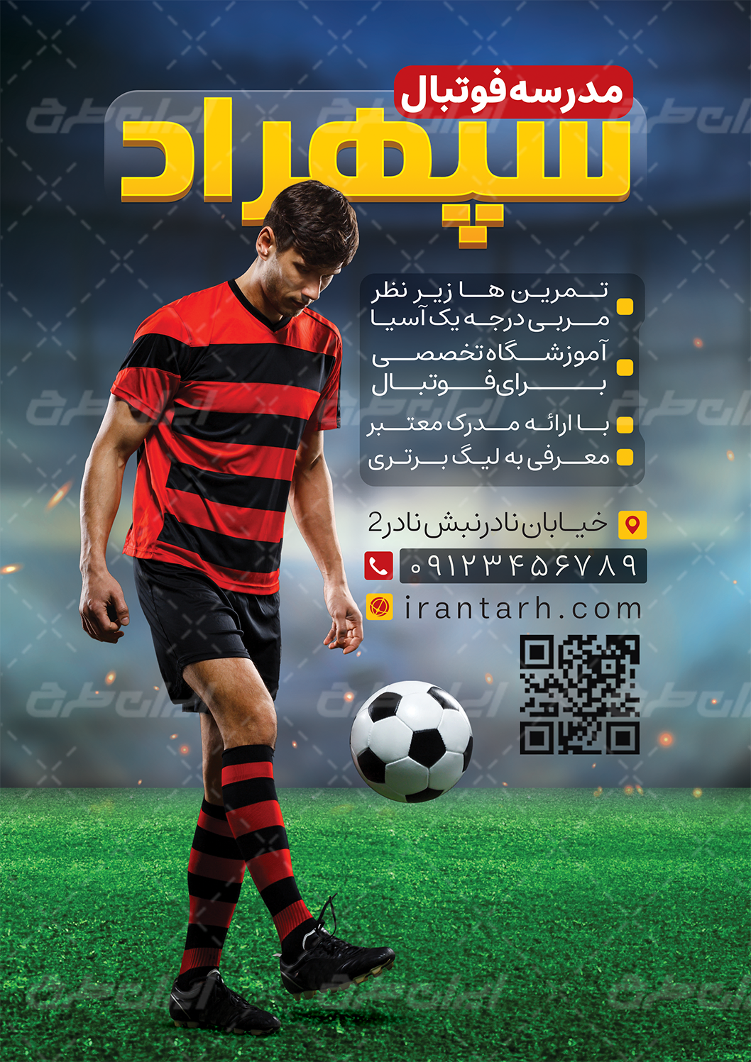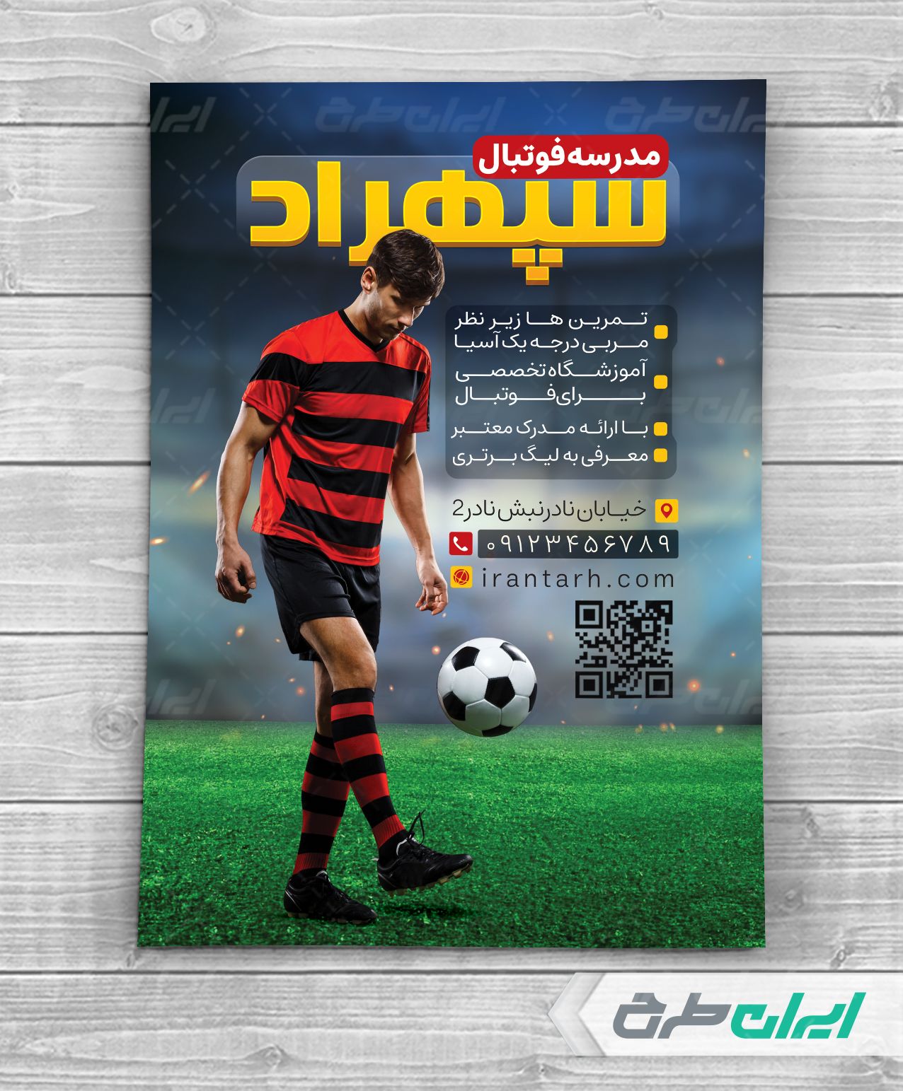 طرح تراکت لایه باز مدرسه فوتبال، جهت بازاریابی و تبلیغات این کلاس ها توسط ایران طرح طراحی و در اختیار کاربران سایت قرار گرفته است.