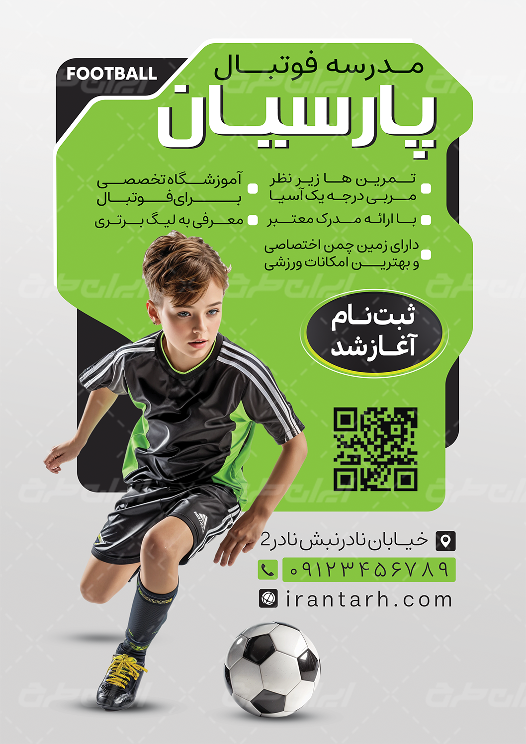 طرح تراکت مدرسه فوتبال شامل: