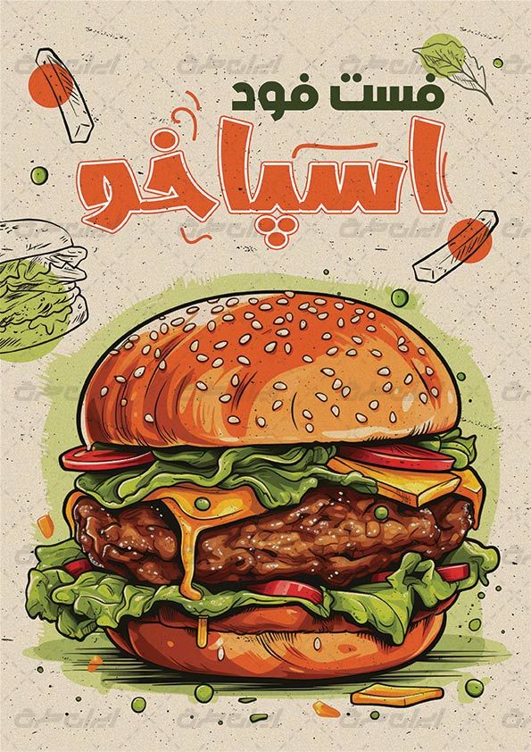 وکتور همبرگر: استفاده از تصویر وکتور همبرگر در تراکت، ارتباط مستقیم با غذاهای فست فود را برقرار میکند. همبرگر به عنوان یک نماد شناخته شده از غذاهای فست فود، تمامیت و کیفیت غذا را به مشتریان نشان میدهد. همچنین، این تصویر جذابیت و رغبت به سفارش غذا را در مشتریان ایجاد میکند.