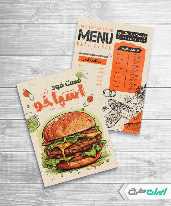 طرح تراکت منو فست فود جهت استفاده این دسته از رستوران ها توسط طراحان ایران طرح طراحی، و در دسترس کاربران سایت قرار گرفته است.