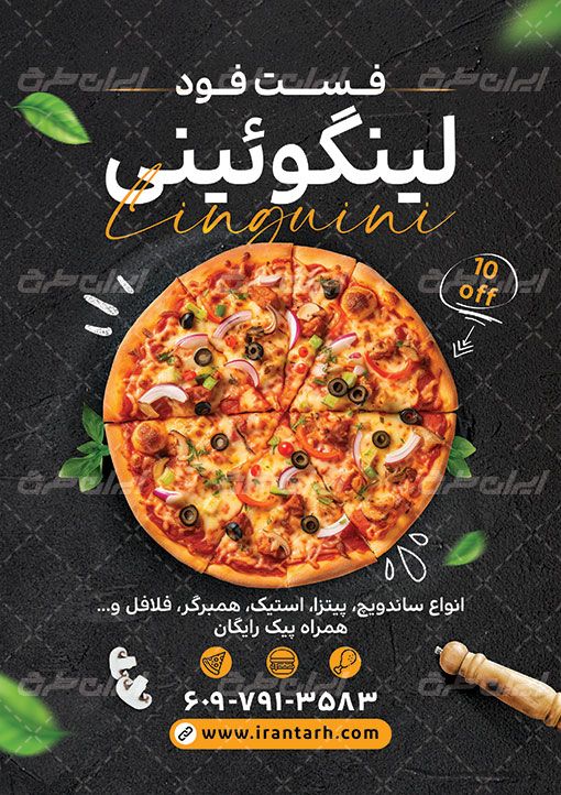 طرح تراکت فست فود شامل: عکس با کیفیت پیتزا ،لیست غذاها و قسمت ، تصویر مرتبط با طرح فست فود، فست فود، لیبل و شیپ های کاربردی می باشد که توسط طراحان ایران طرح در نرم افزار فتوشاپ طراحی شده است. به دلیل لایه باز بودن (قابل ویرایش توسط کاربران در نرم افزار فتوشاپ Adobe Photoshop) بودن و کیفیت بالای عناصر و المان های استفاده شده در طرح تراکت رنگی ، می توانید از این طرح علاوه بر چاپ تراکت(به صورت عمودی)، از سایر موارد تبلیغاتی از جمله نصب روی بیلبورد، استوری اینستاگرام و دیگر پلت فرم های فضای مجازی بهره ببرید.