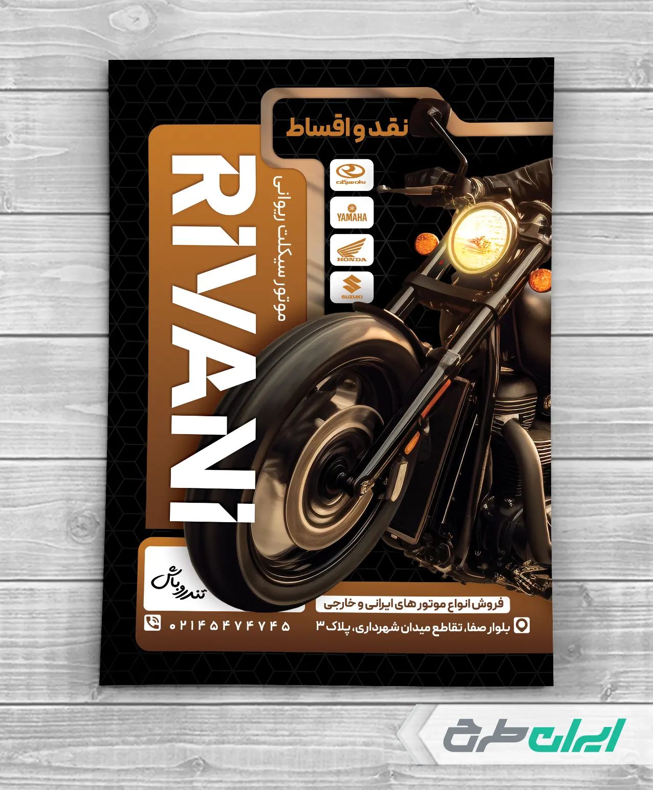 طرح لایه باز تراکت فروشگاه موتور سیکلت، توسط تیم ایران طرح جهت تبلیغات و بازاریابی این مشاغل طراحی و در دسترس کاربران سایت قرار گرفته است.