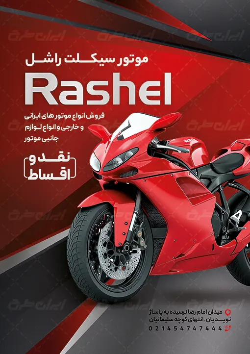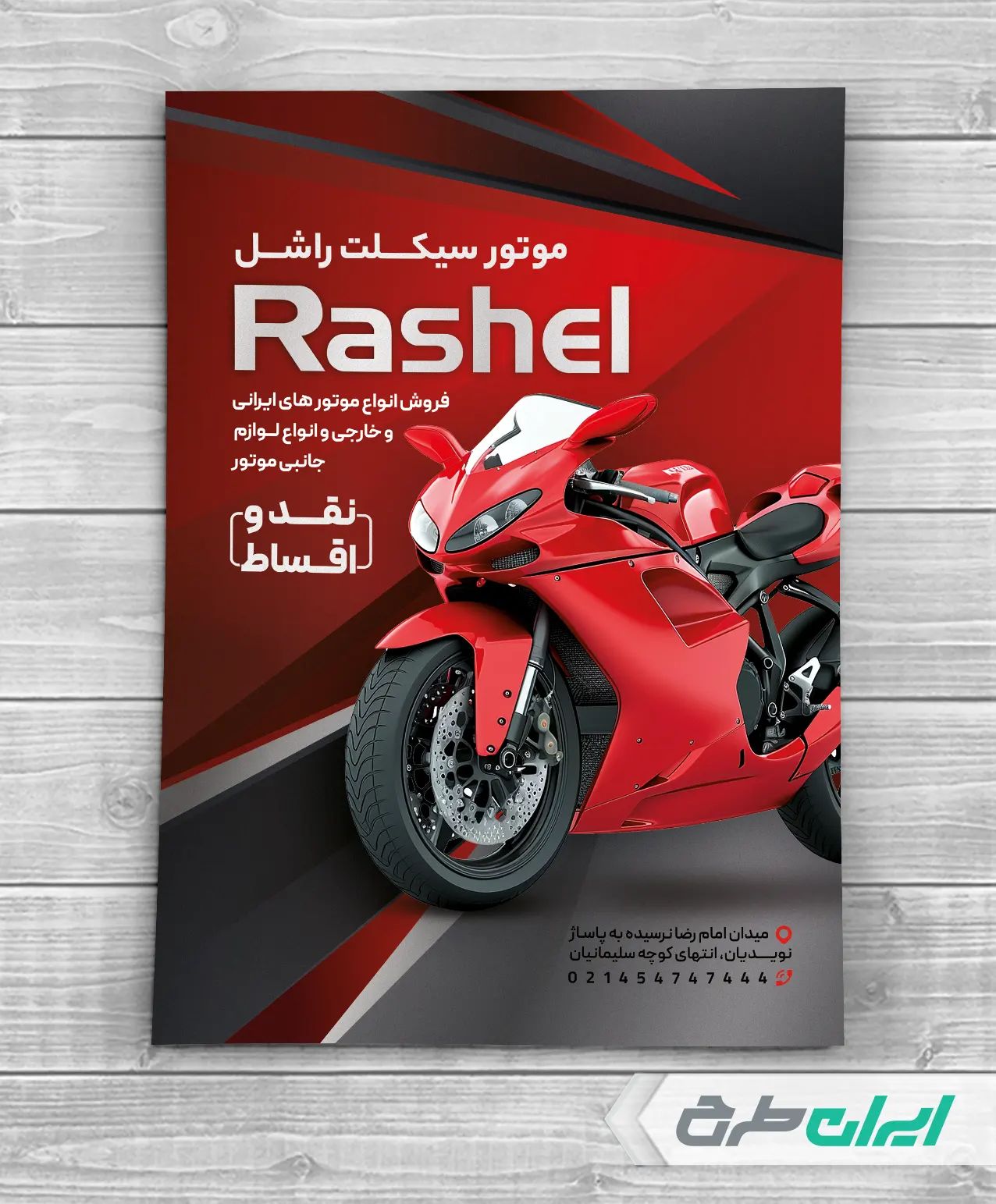 طرح لایه باز تراکت فروشگاه موتور سیکلت، توسط تیم ایران طرح جهت تبلیغات و بازاریابی این مشاغل طراحی و در دسترس کاربران سایت قرار گرفته است.