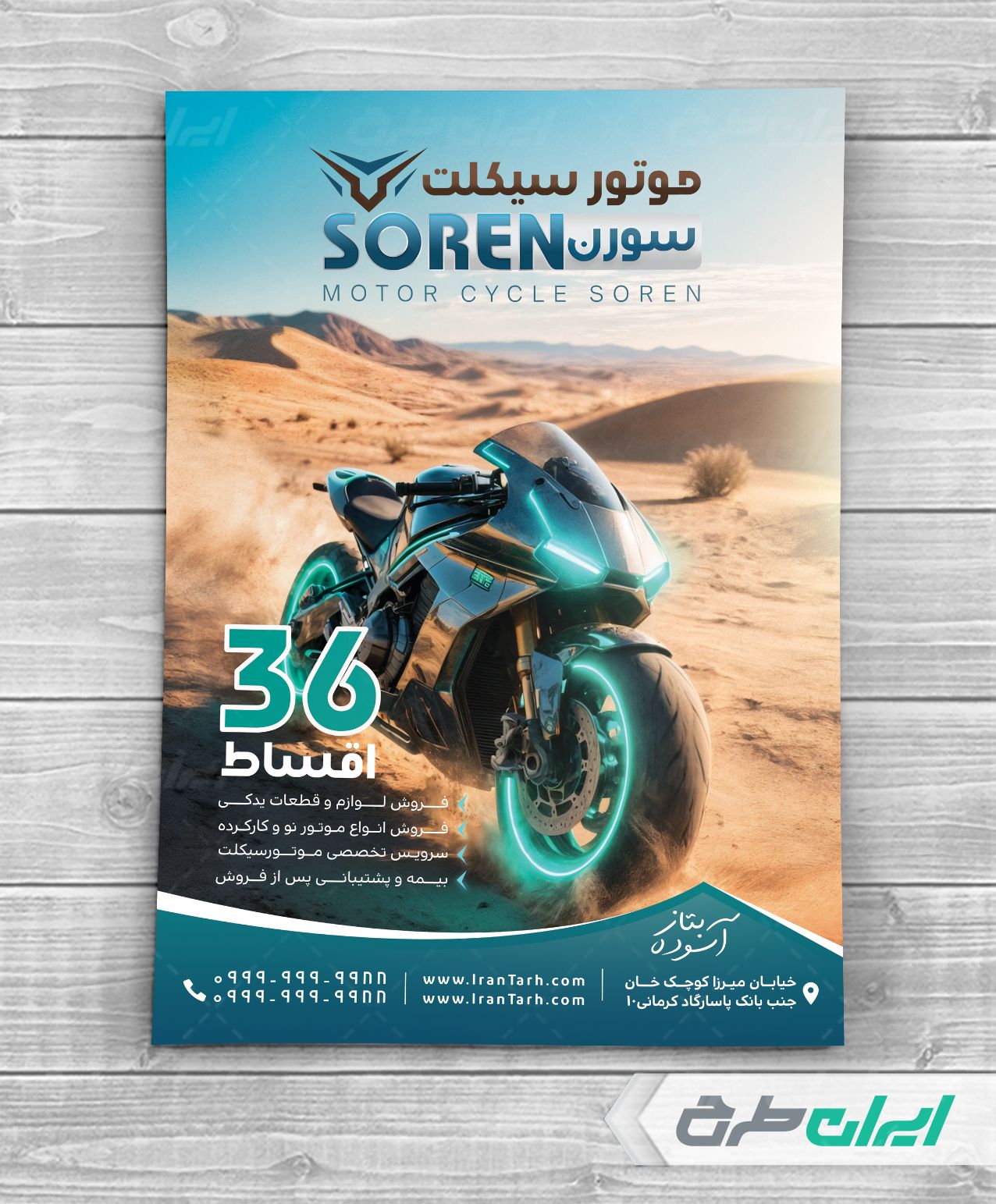 طرح لایه باز تراکت فروشگاه موتور سیکلت، توسط تیم ایران طرح جهت تبلیغات و بازاریابی این مشاغل طراحی و در دسترس کاربران سایت قرار گرفته است.