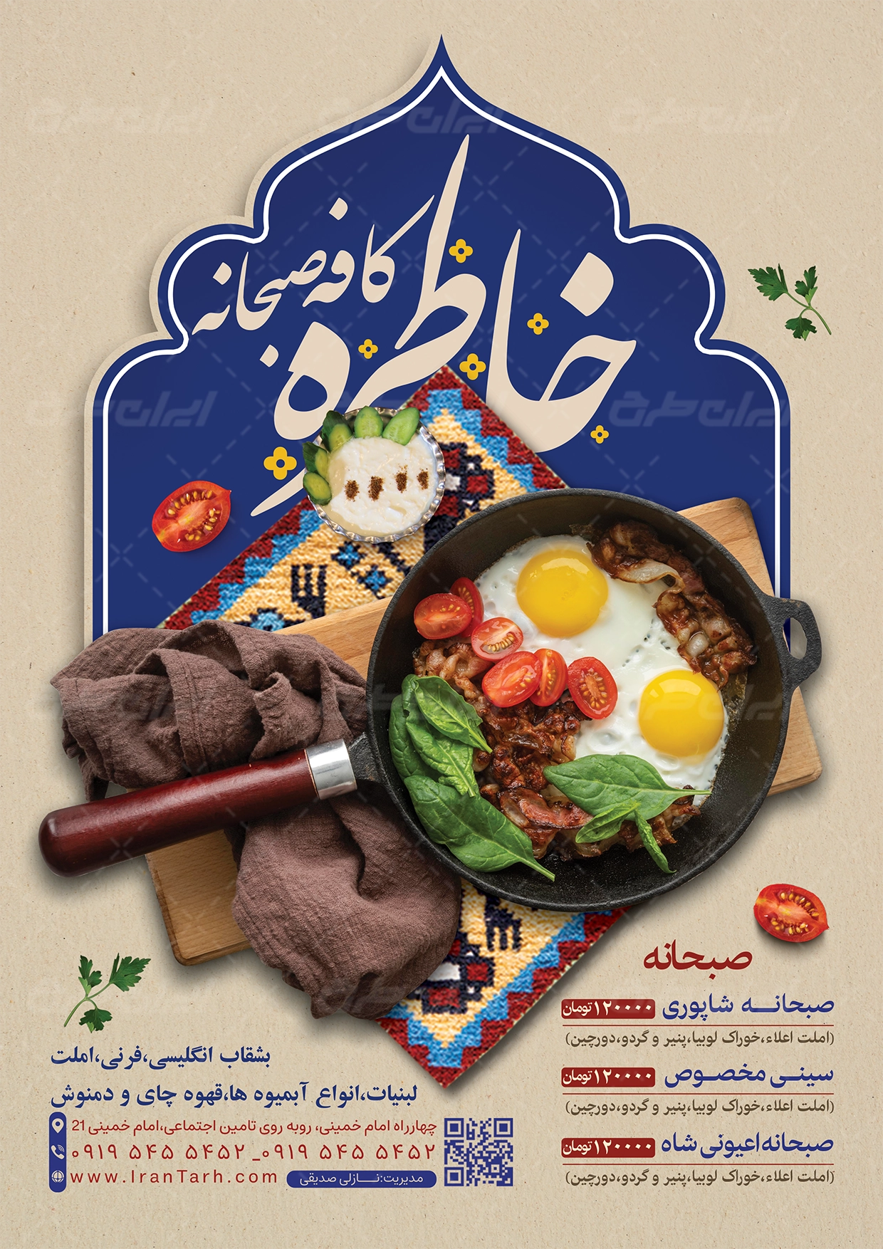 - طراحی شیک و کاربردی تراکت که مناسب شغل کافه صبحانه می باشد.