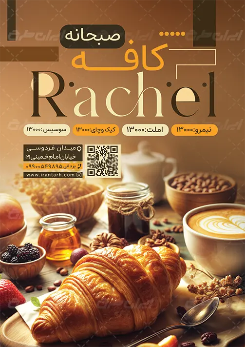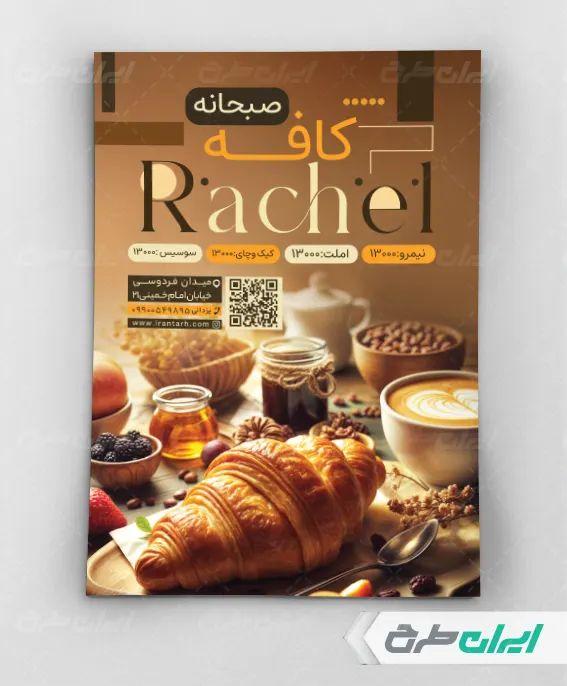- طراحی شیک و کاربردی تراکت که مناسب شغل کافه صبحانه می باشد.