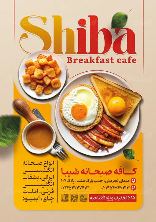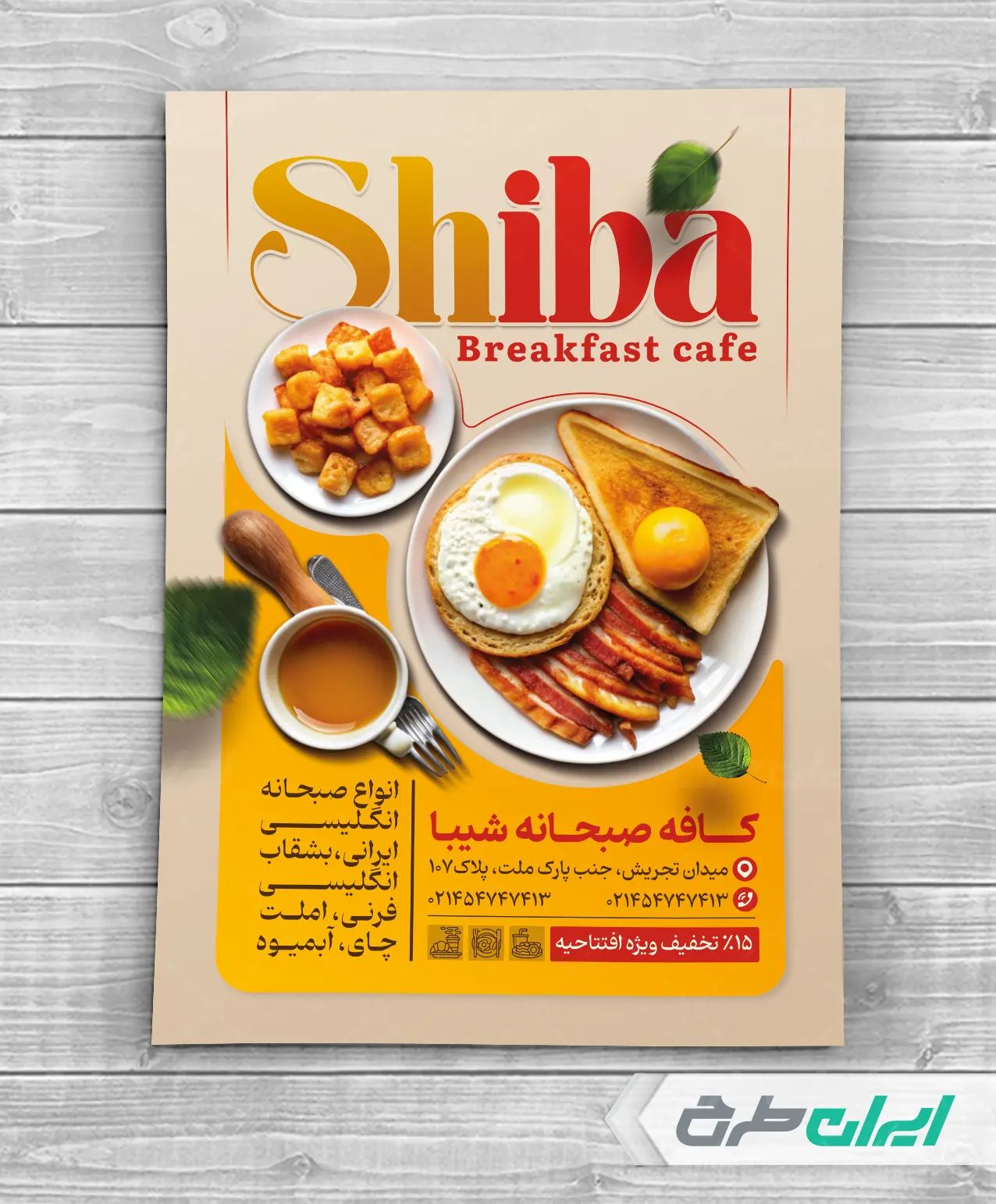 - طراحی شیک و کاربردی تراکت که مناسب شغل کافه صبحانه می باشد.