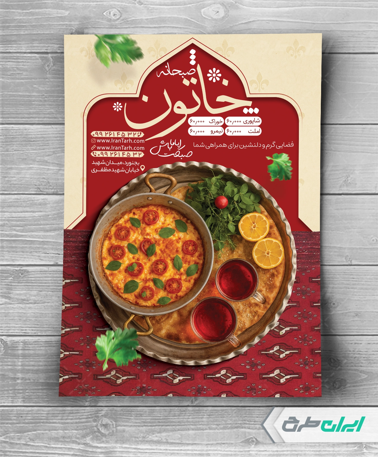 - طراحی شیک و کاربردی تراکت که مناسب شغل کافه صبحانه می باشد.