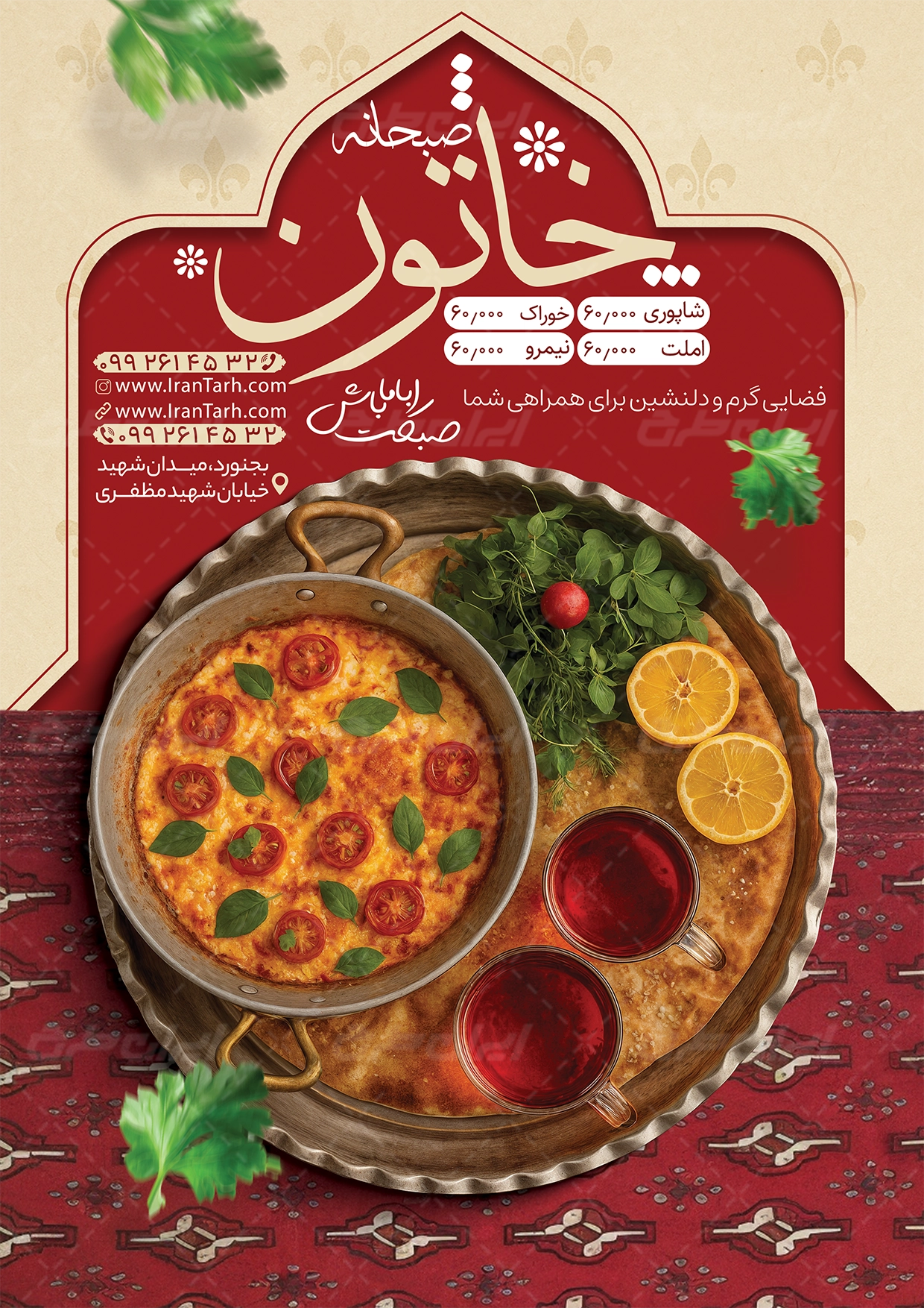 طرح تراکت کافه صبحانه شامل: