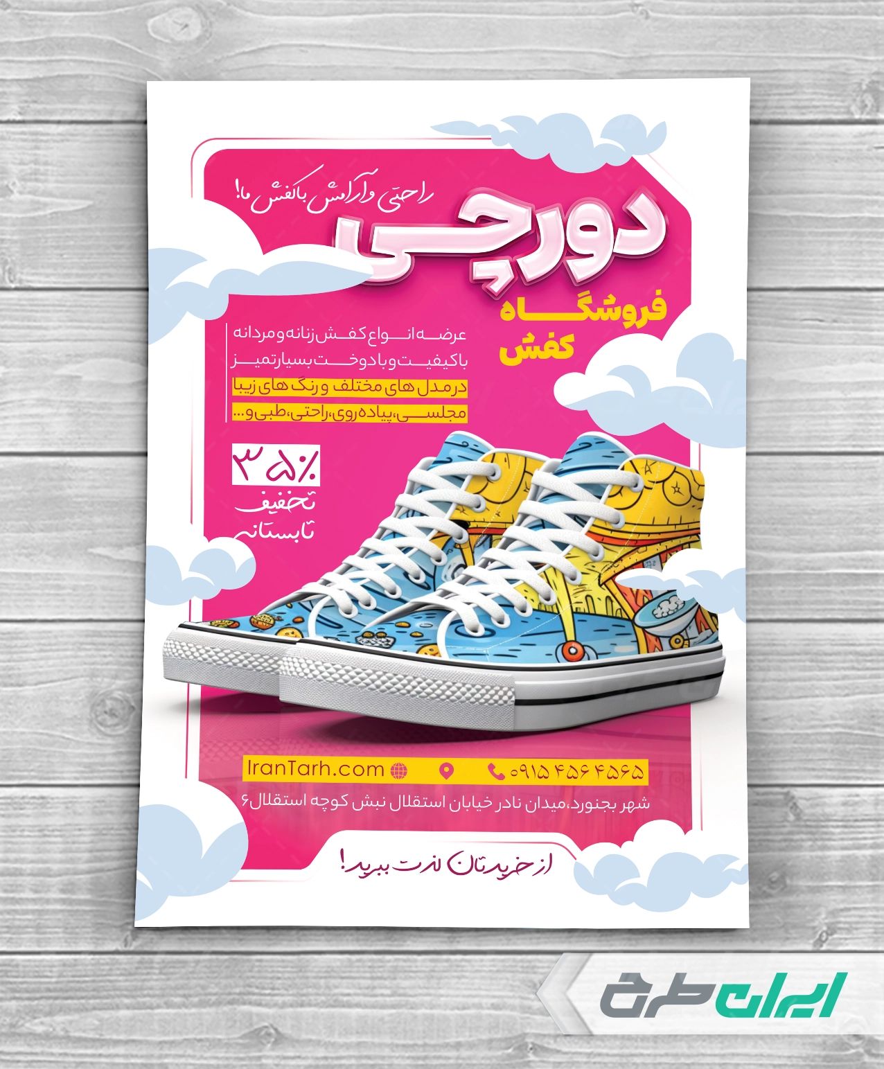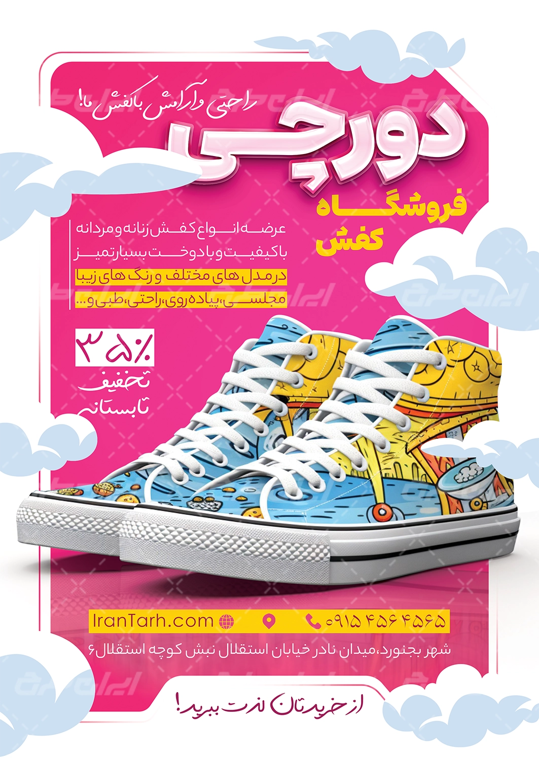 طرح تراکت کفش فروشی، جهت بازاریابی و تبلیغات این فروشگاه ها توسط ایران طرح طراحی و در اختیار کاربران سایت قرار گرفته است.