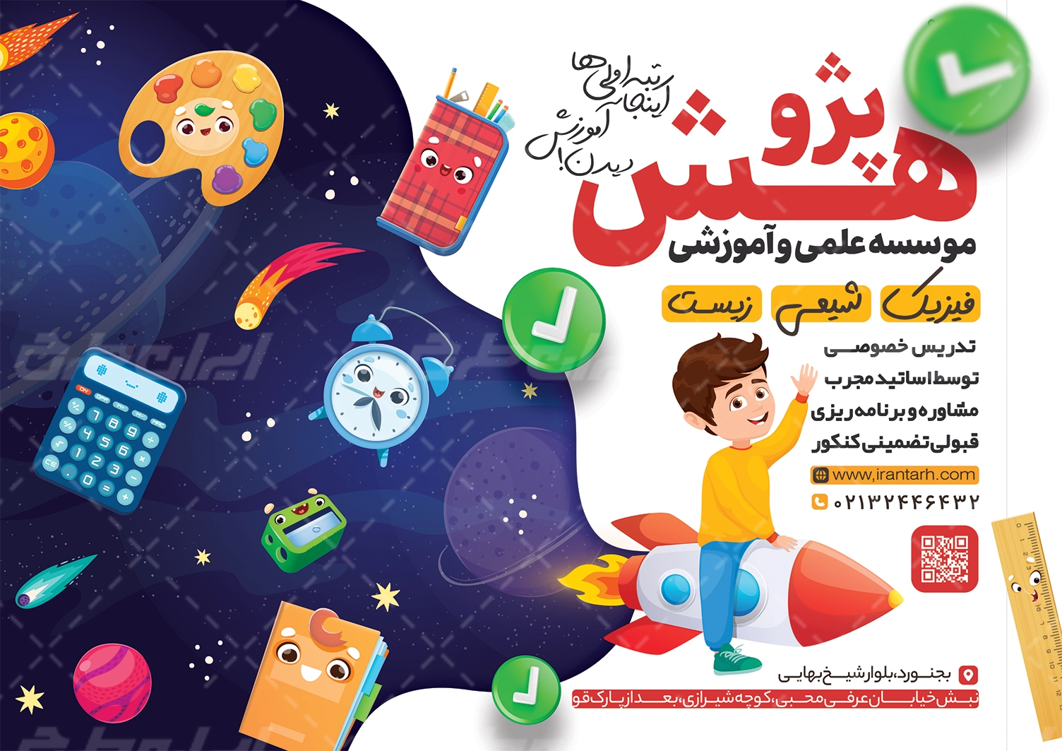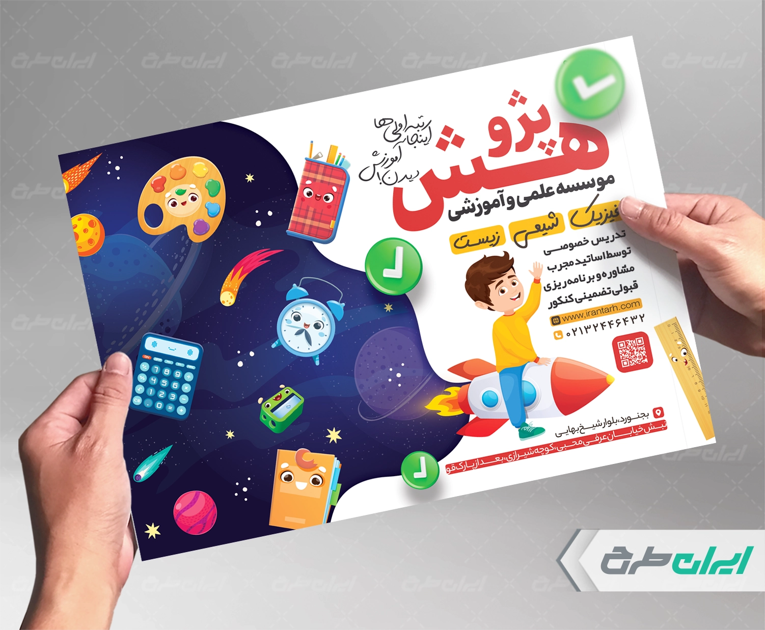 طرح تراکت آموزشگاه علمی و کلاس درسی، جهت تبلیغات این آموزشگاه ها توسط طراحان ایران طرح طراحی و در دسترس کاربران سایت قرار گرفته است.