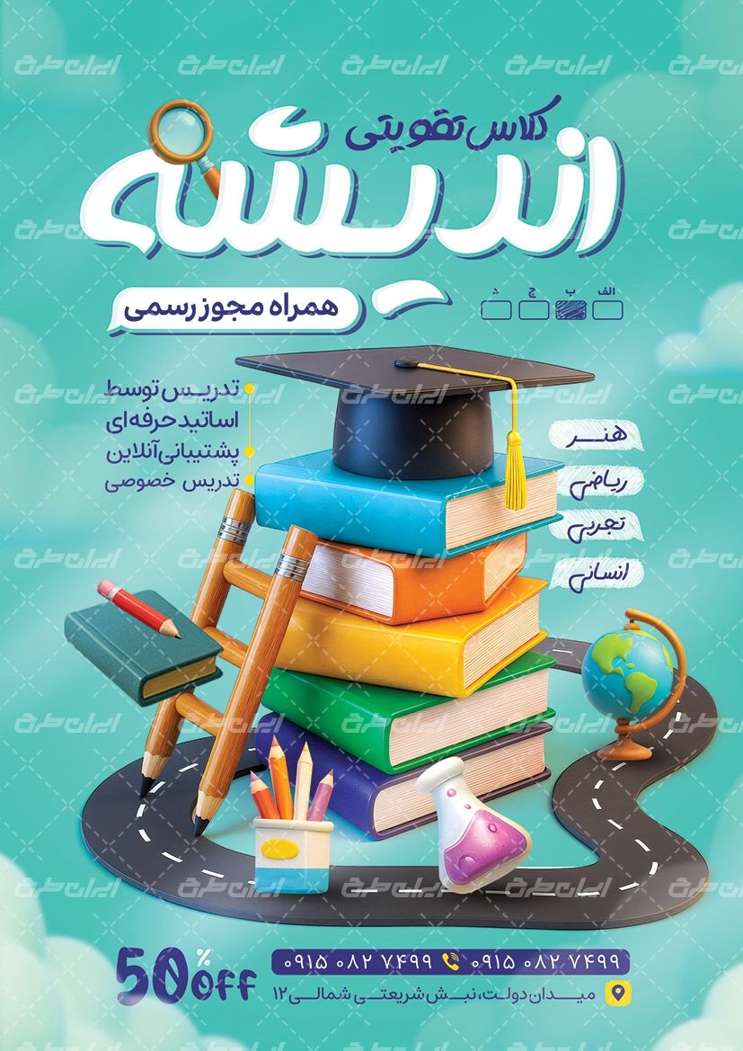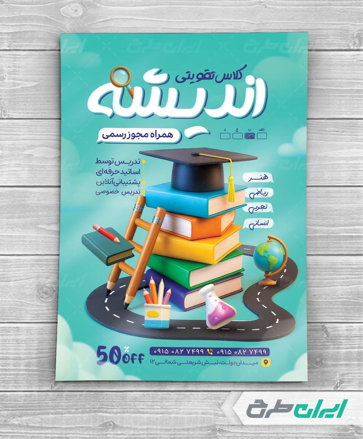 طرح تراکت آموزشگاه علمی و کلاس درسی، جهت تبلیغات این آموزشگاه ها توسط طراحان ایران طرح طراحی و در دسترس کاربران سایت قرار گرفته است.