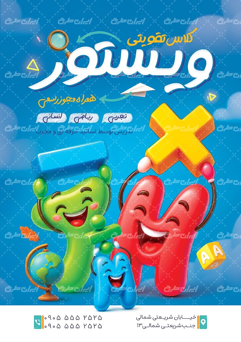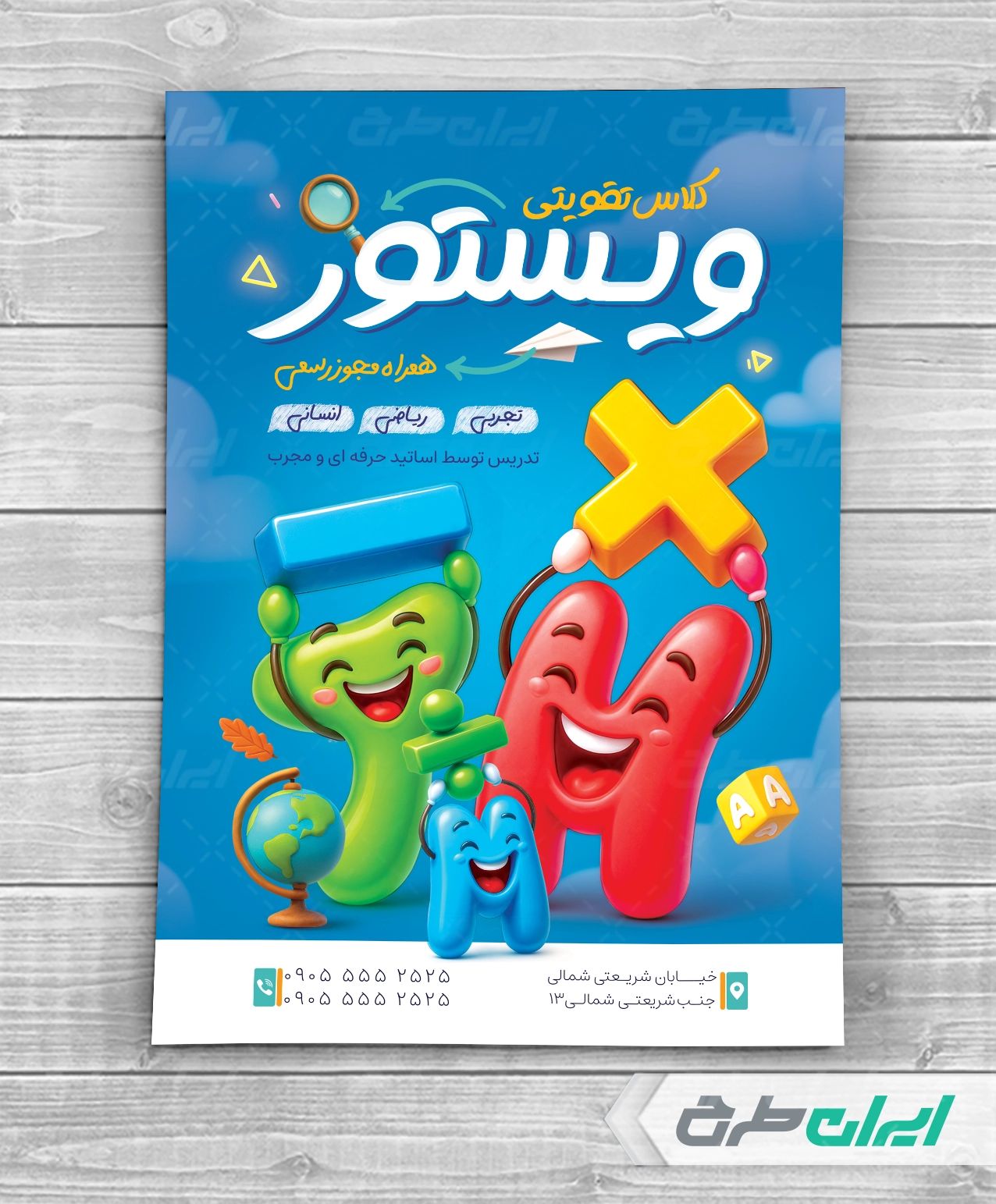 در تراکتهای مربوط به کلاسهای تقویتی میتوان اطلاعات مهمی مانند دروس ارائهشده (ریاضی، فیزیک، شیمی، زبان و ...)، مقاطع تحصیلی تحت پوشش، نام مدرس یا آموزشگاه، زمانبندی کلاسها و شیوه ثبتنام را درج کرد. طراحی جذاب و استفاده از رنگهای آموزشی، به همراه جملاتی انگیزشی و تاکید بر نتایج موفق دانشآموزان قبلی، میتواند تأثیر روانی مثبتی بر مخاطب بگذارد و انگیزه مراجعه را افزایش دهد.