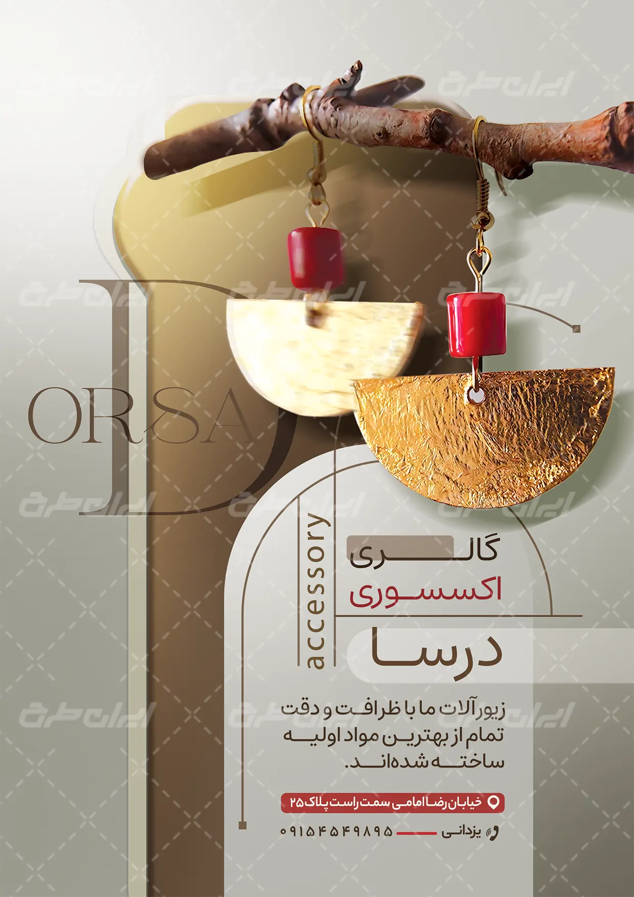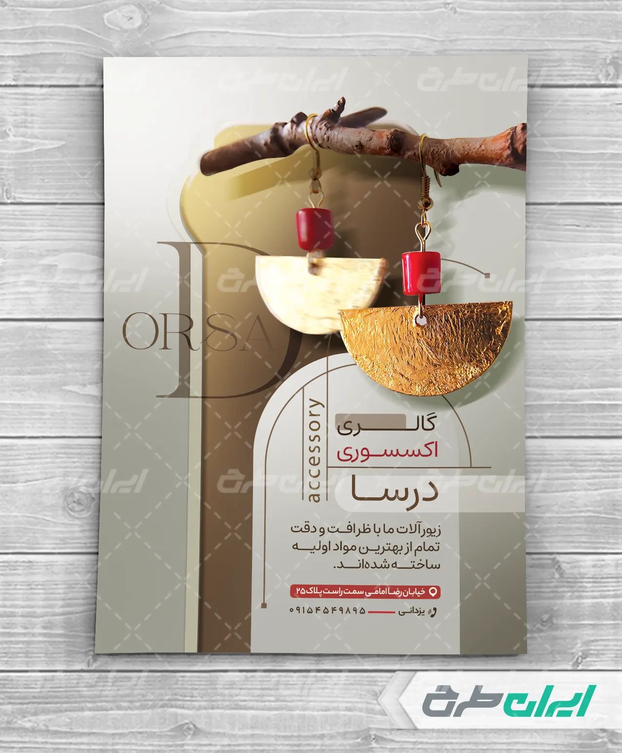 تراکت لایه باز گالری اکسسوری، توسط تیم ایران طرح برای بازاریابی و تبلیغات این فروشگاه طراحی شده است.