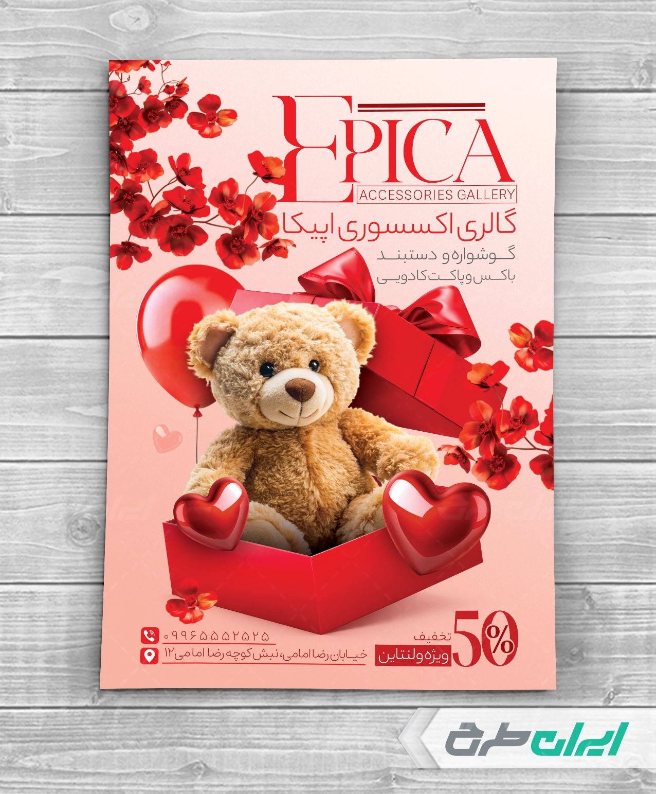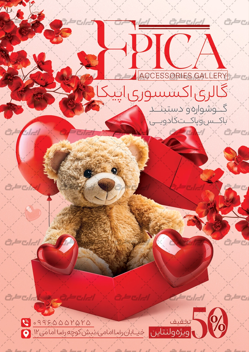 تراکت لایه باز گالری اکسسوری، توسط تیم ایران طرح برای بازاریابی و تبلیغات این فروشگاه طراحی شده است.