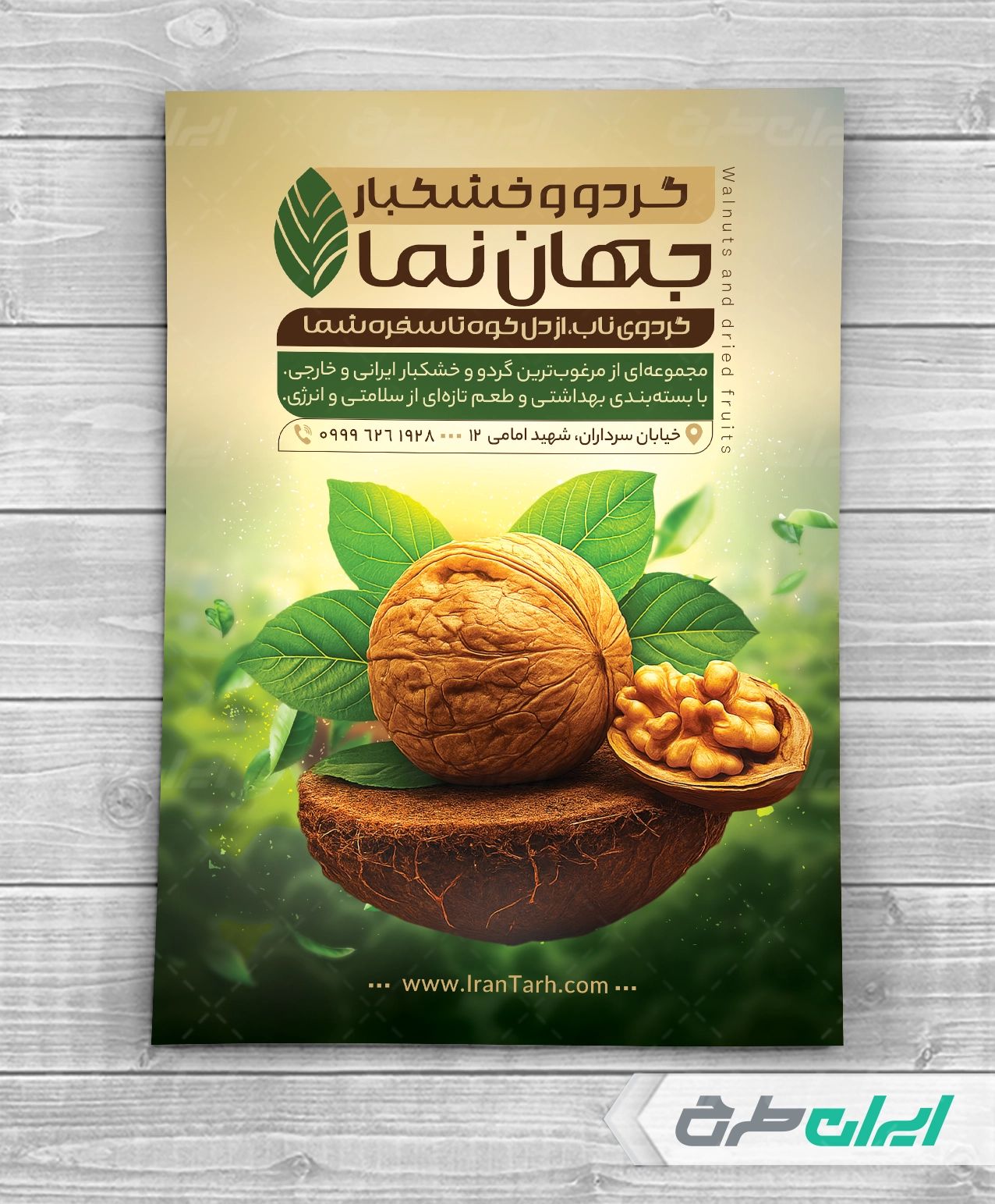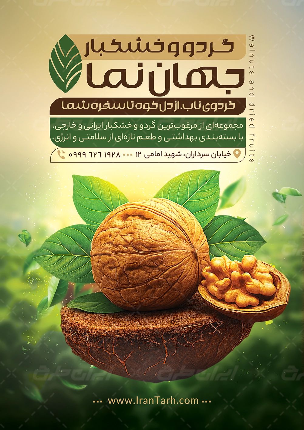- استفاده از عکس باکیفیت گردو که مناسب طرح تراکت گردو فروشی می باشد.