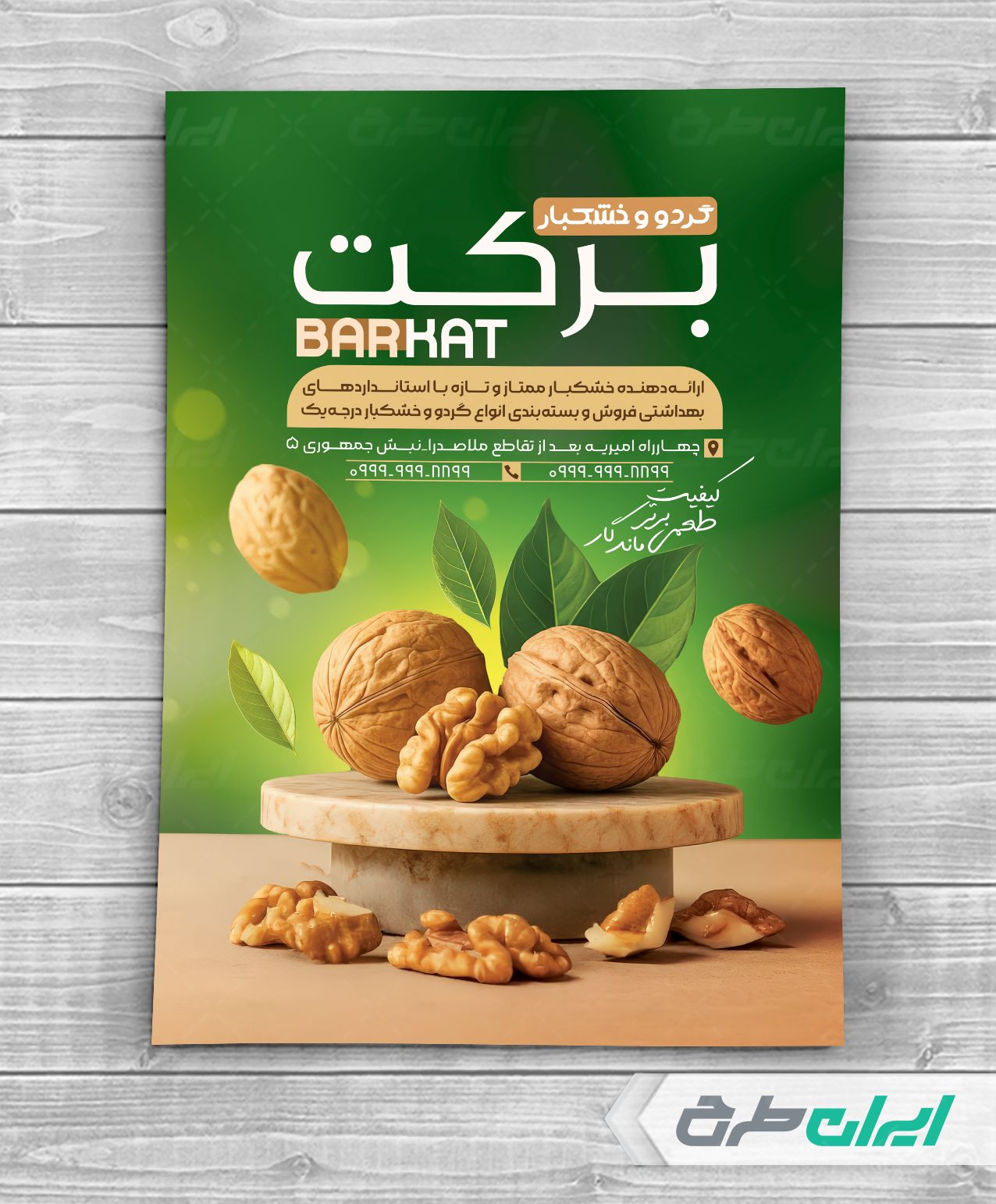 - استفاده از عکس باکیفیت گردو که مناسب طرح تراکت گردو فروشی می باشد.