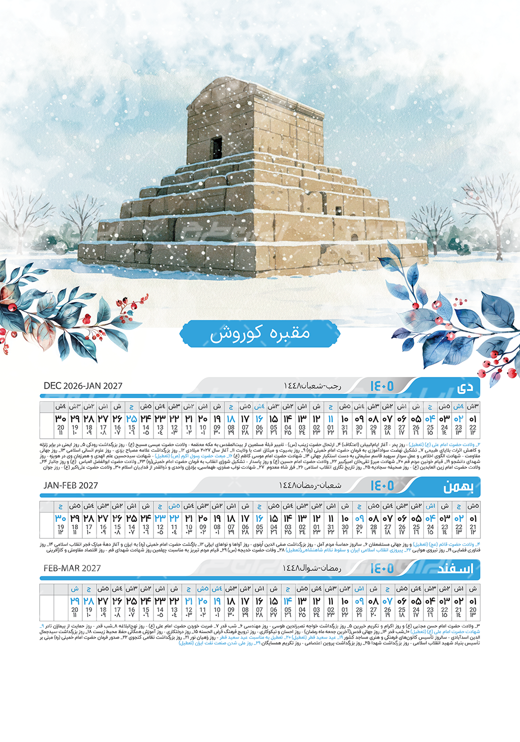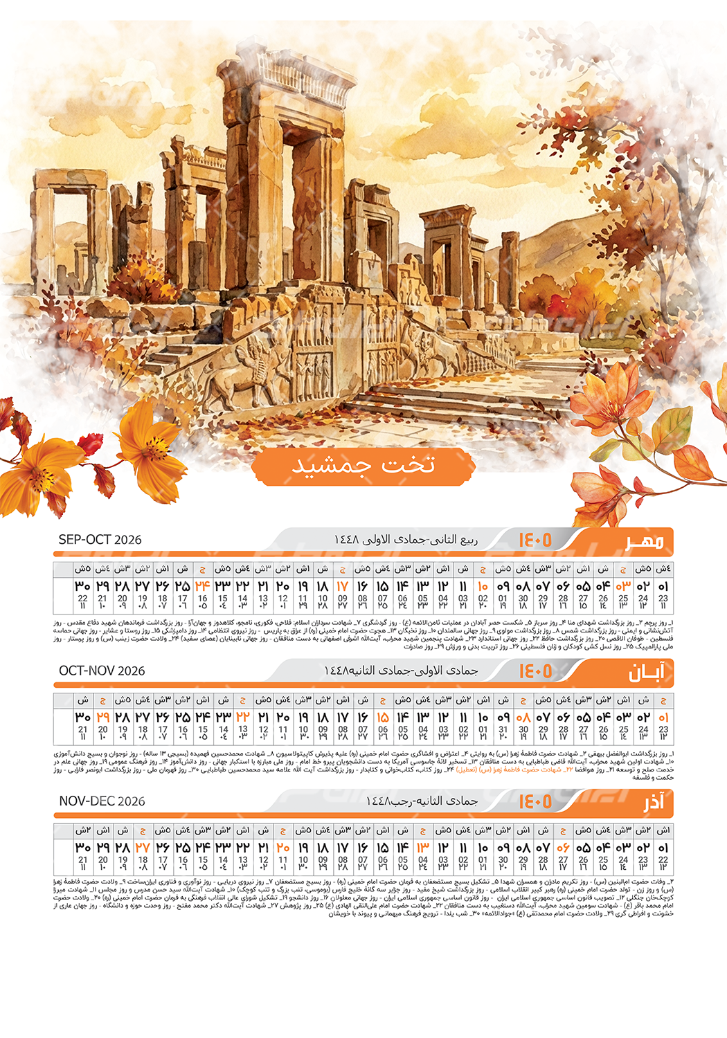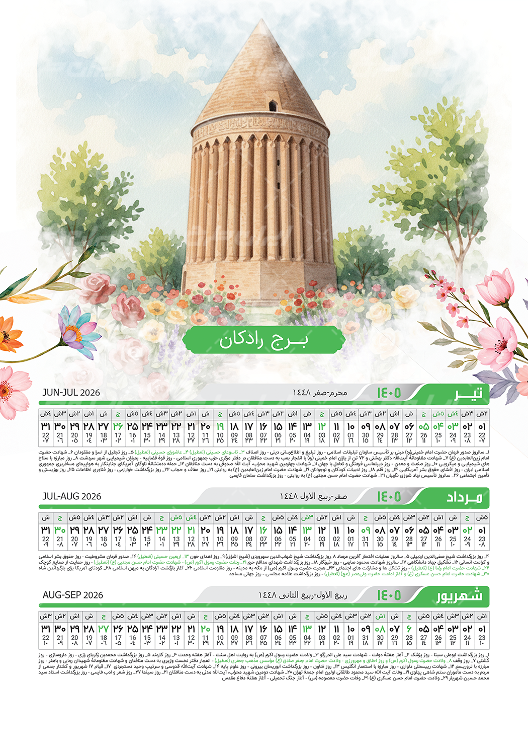 طرح تقویم سال 1405 شامل :