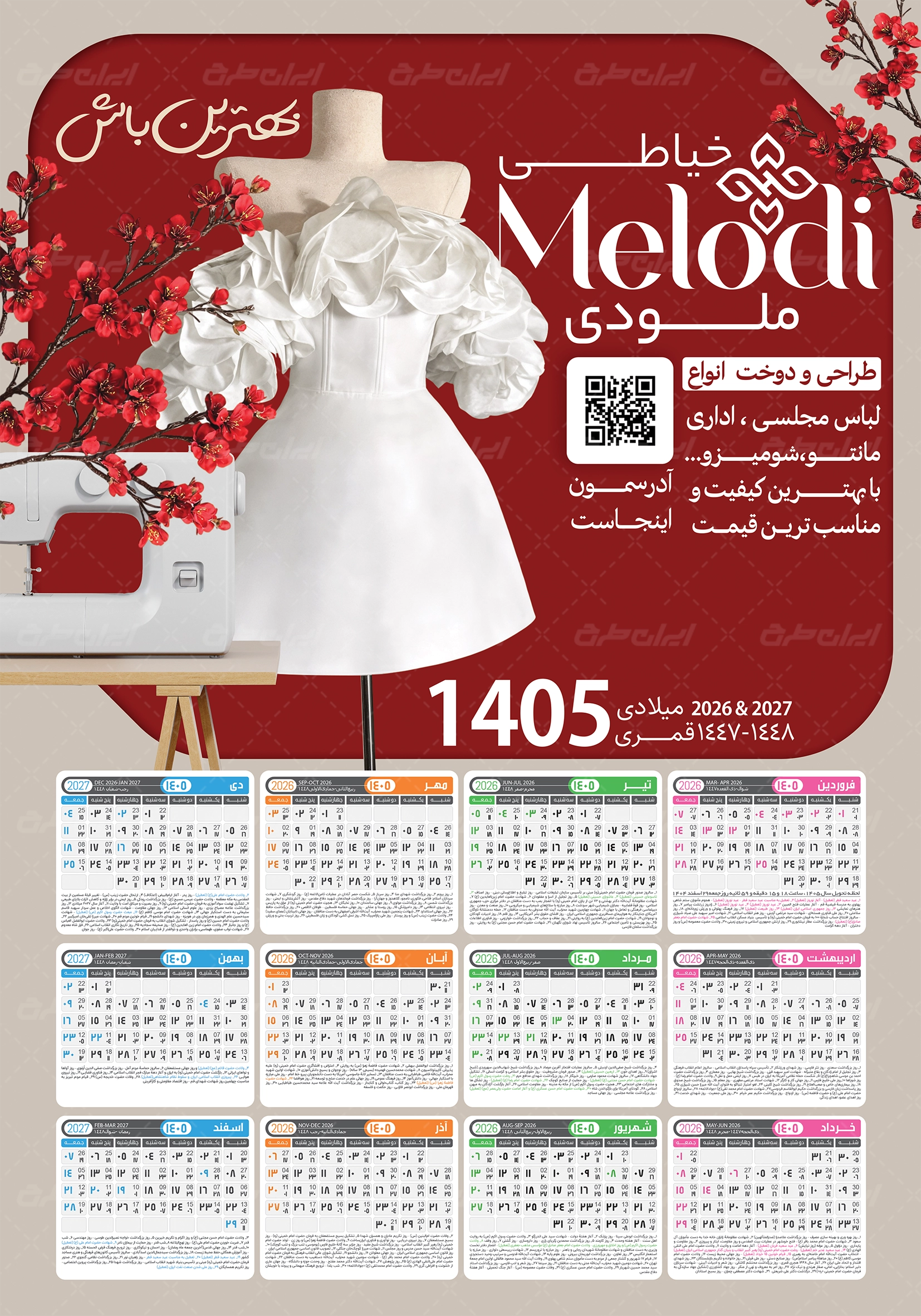 طرح تقویم خیاطی 1405 شامل :