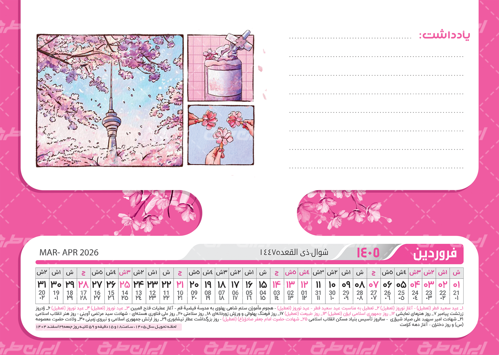 - طراحی شیک و کاربردی تقویم 1405
