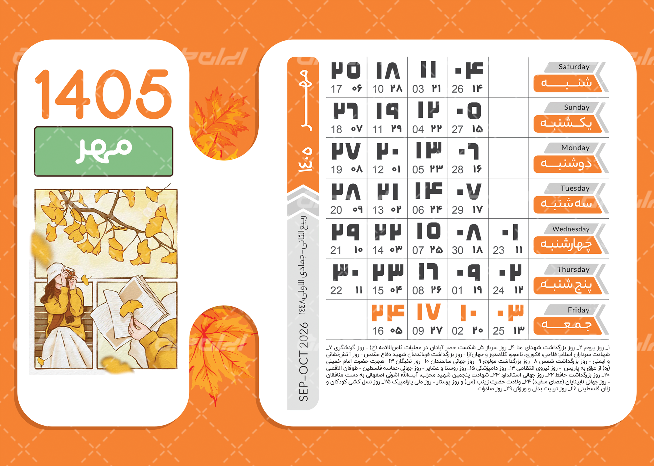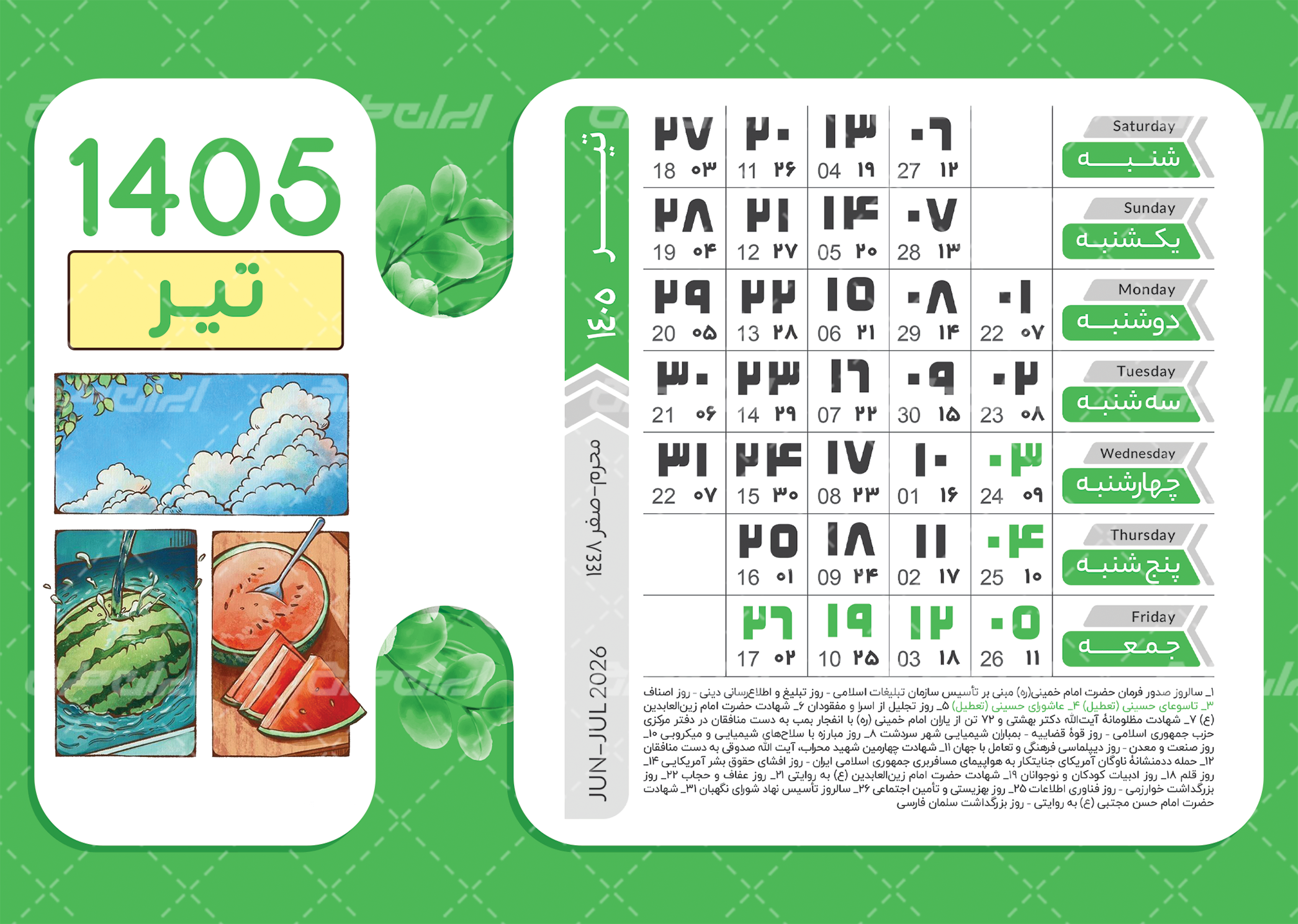 طرح تقویم 1405 شامل :