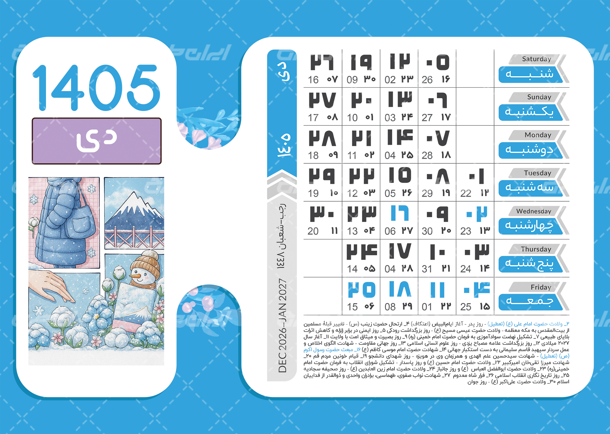 نکات طرح لایه باز تقویم سال 1405
