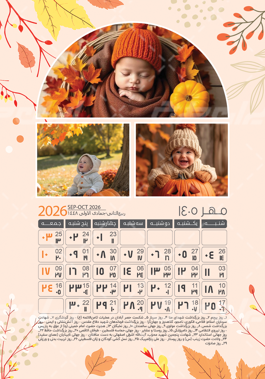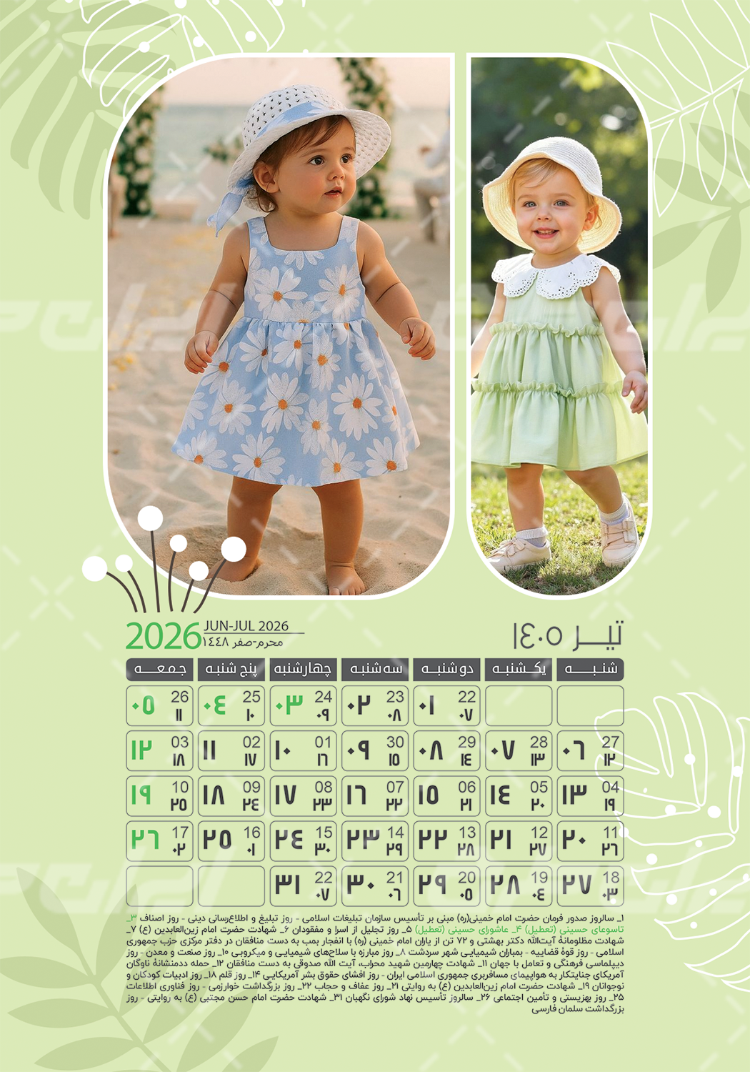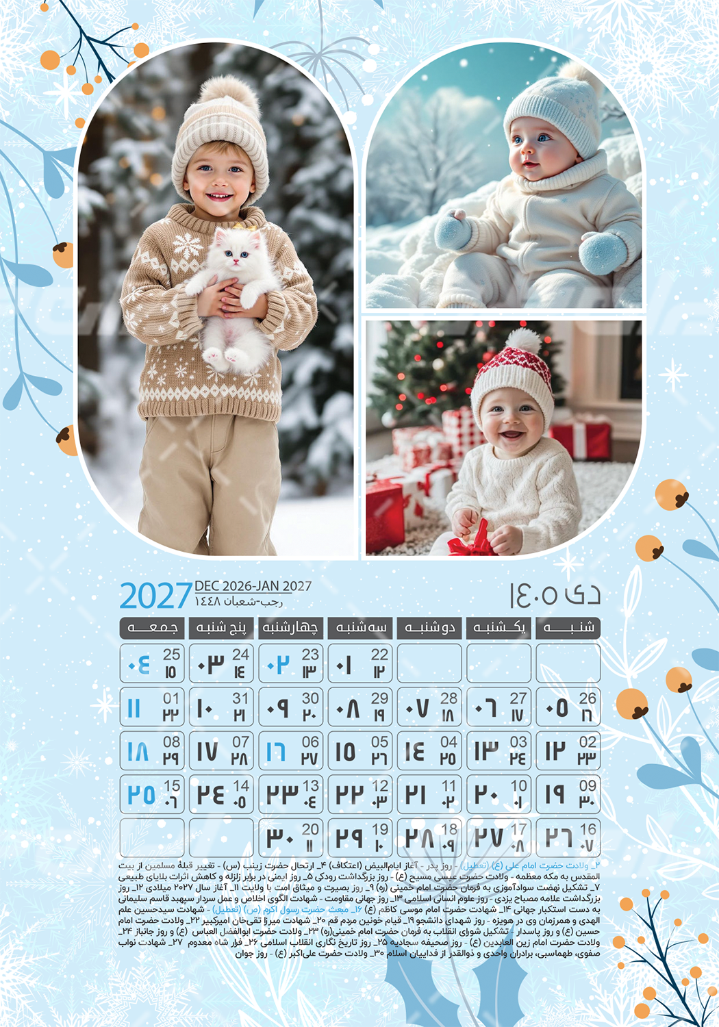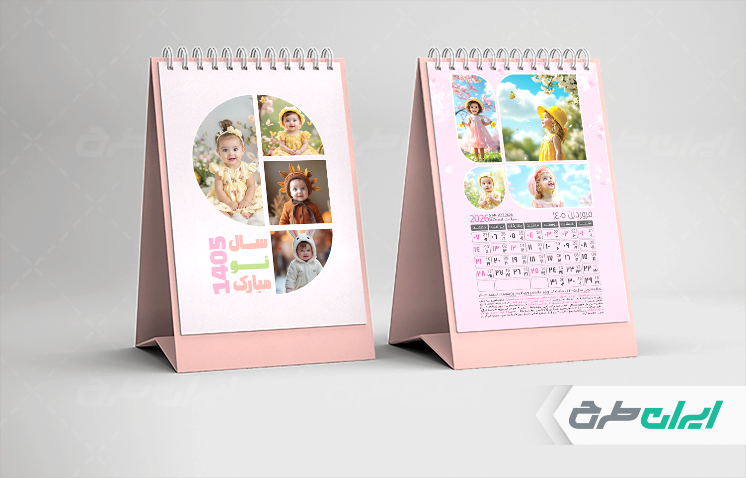 - استفاده مناسب از عکس با کیفیت کودک که مناسب طرح تقویم رو میزی 1405 می باشد.