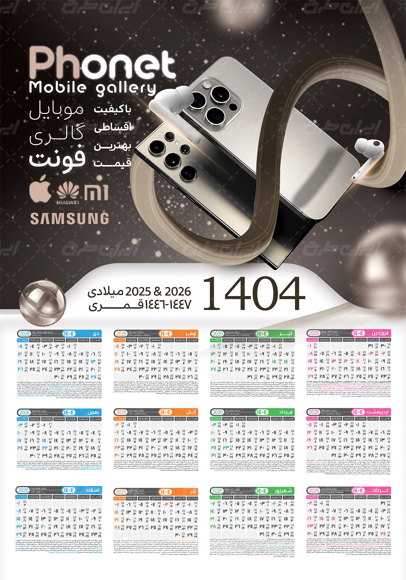 - طراحی شیک و کاربردی تقویم موبایل فروشی 1404