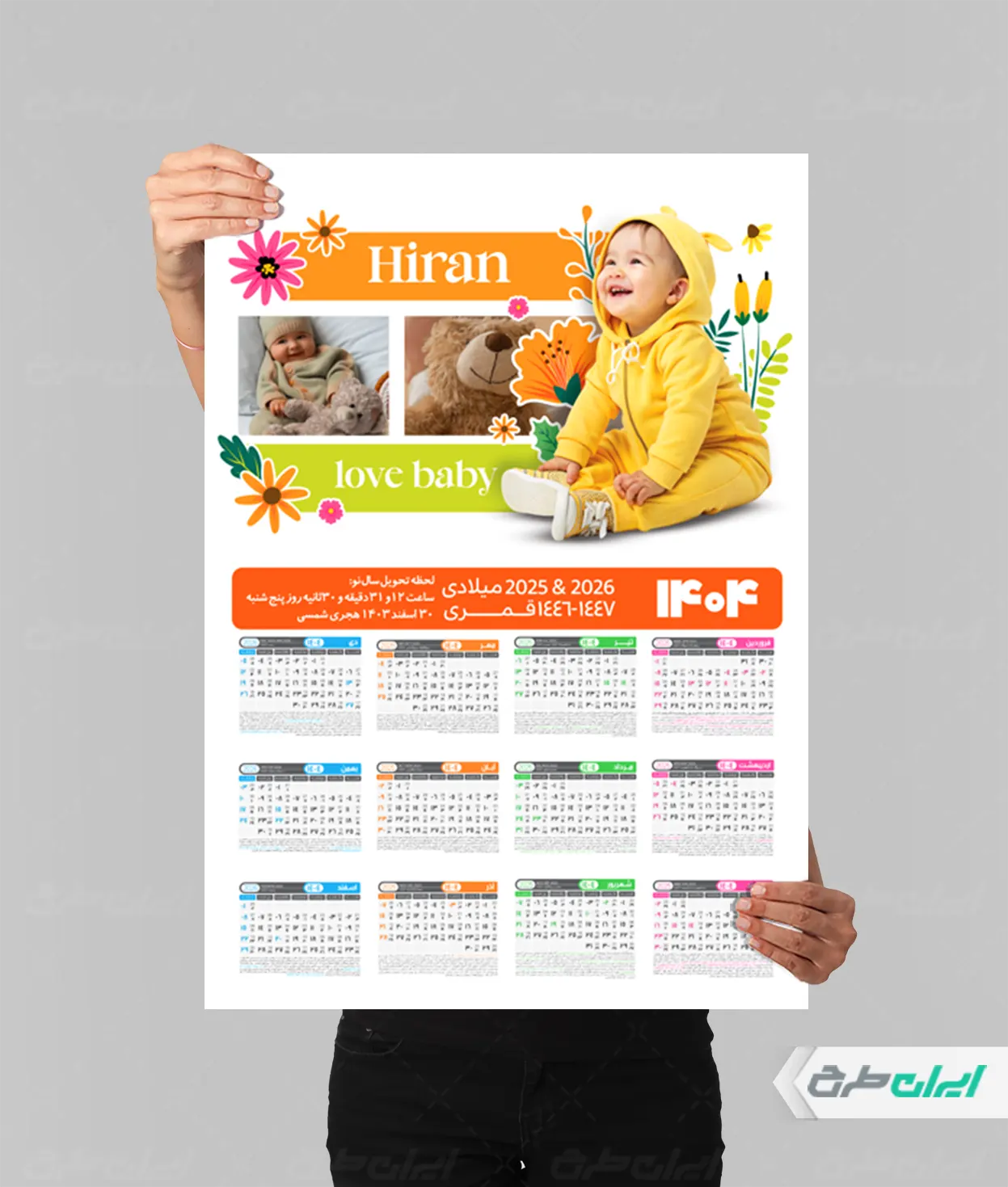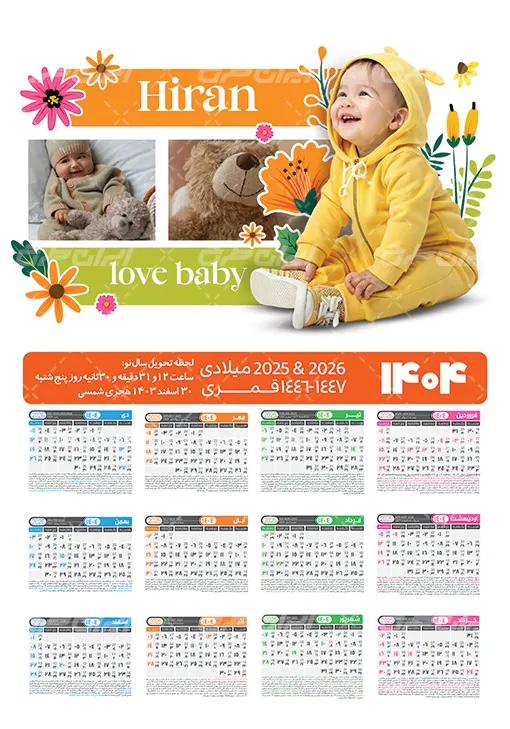 - استفاده مناسب از عکس با کیفیت کودک که مناسب طرح تقویم کودک 1404 می باشد.