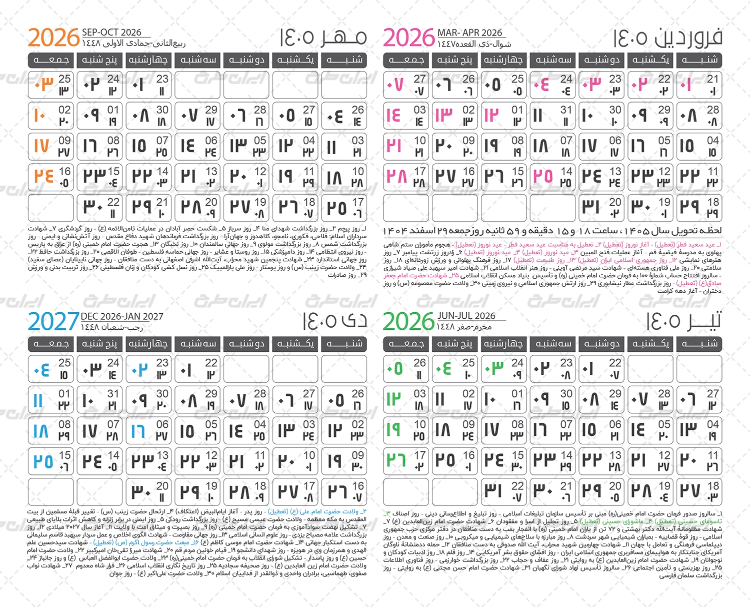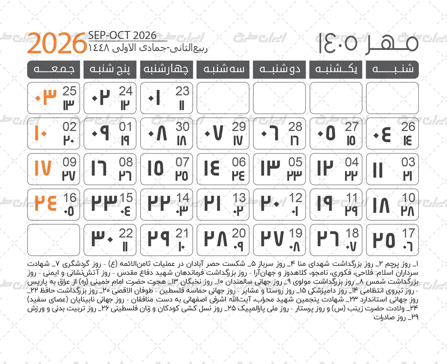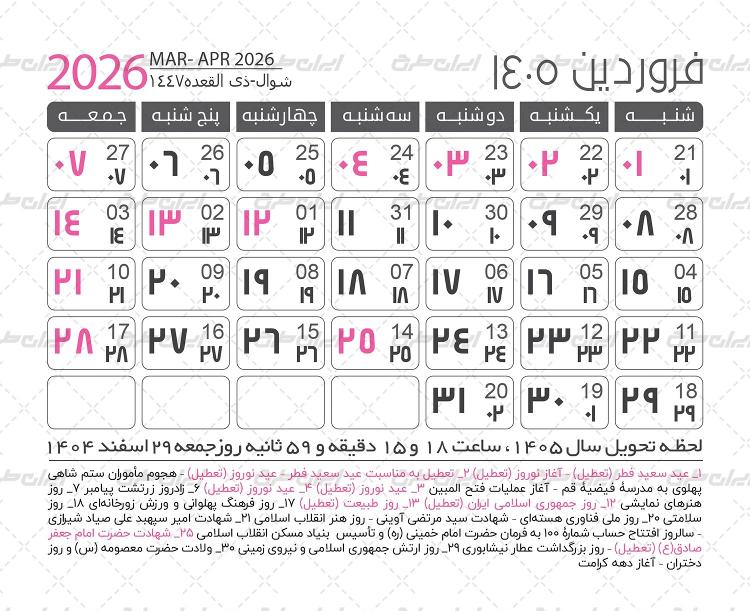 طرح تقویم، تقویم لایه باز، طرح تقویم 1405، تقویم لایه باز 1405، طرح تقویم لایه باز 1405، جدول بندی ماه های سال، ایام هفته، شمارش روز ها، مناسبت های شمسی و قمری، مناسبت های ملی و جهانی، لیبل ها، شیپ های کاربردی