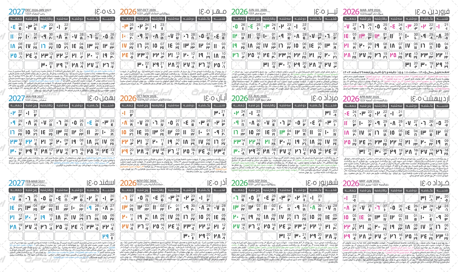 - همنشینی مناسب رنگ های بکار رفته و طرح تقویم