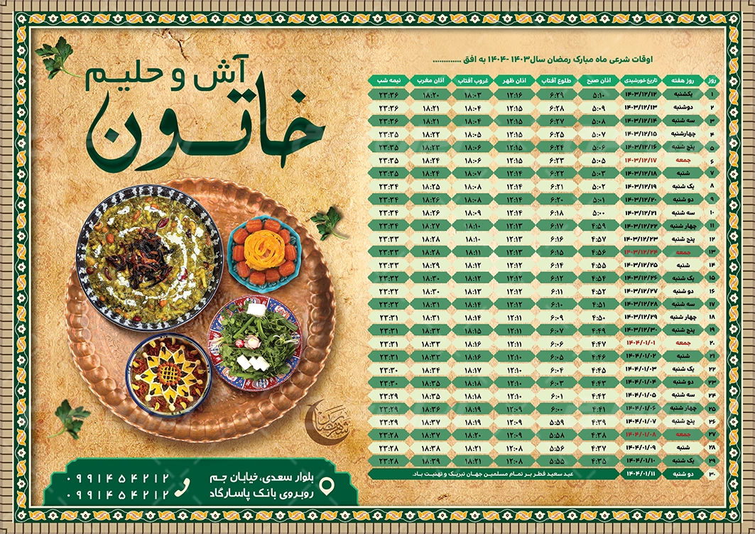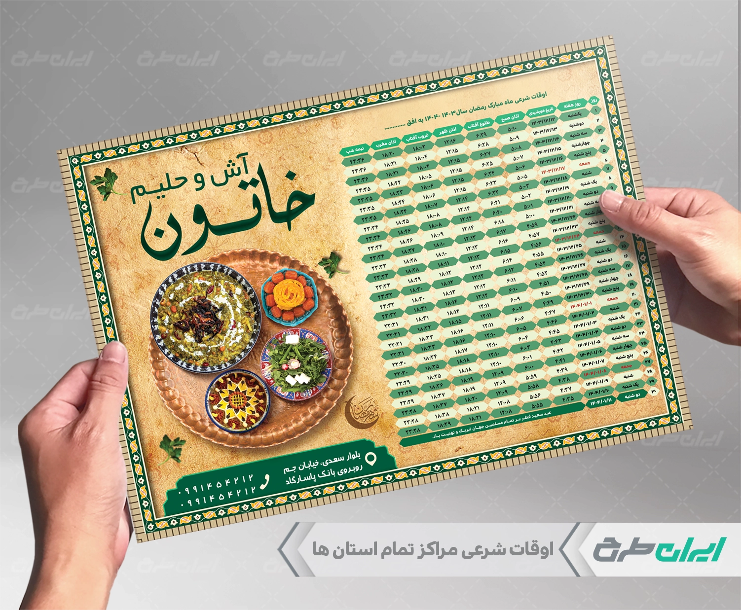 طرح جدول اوقات شرعی رمضان آش و حلیم