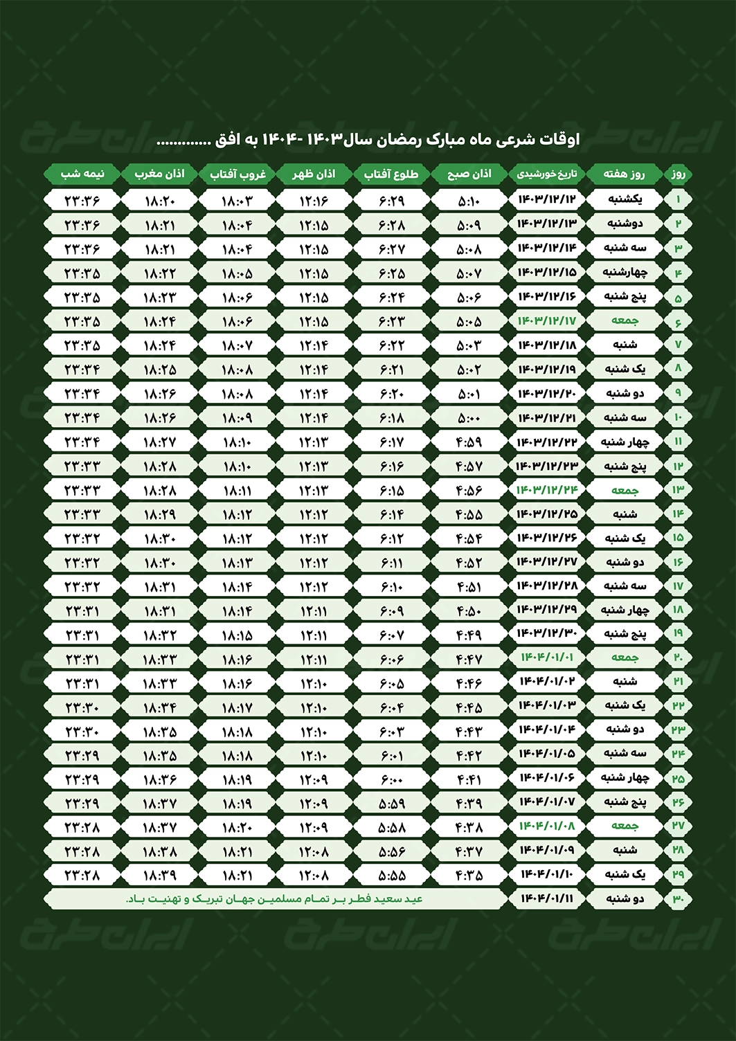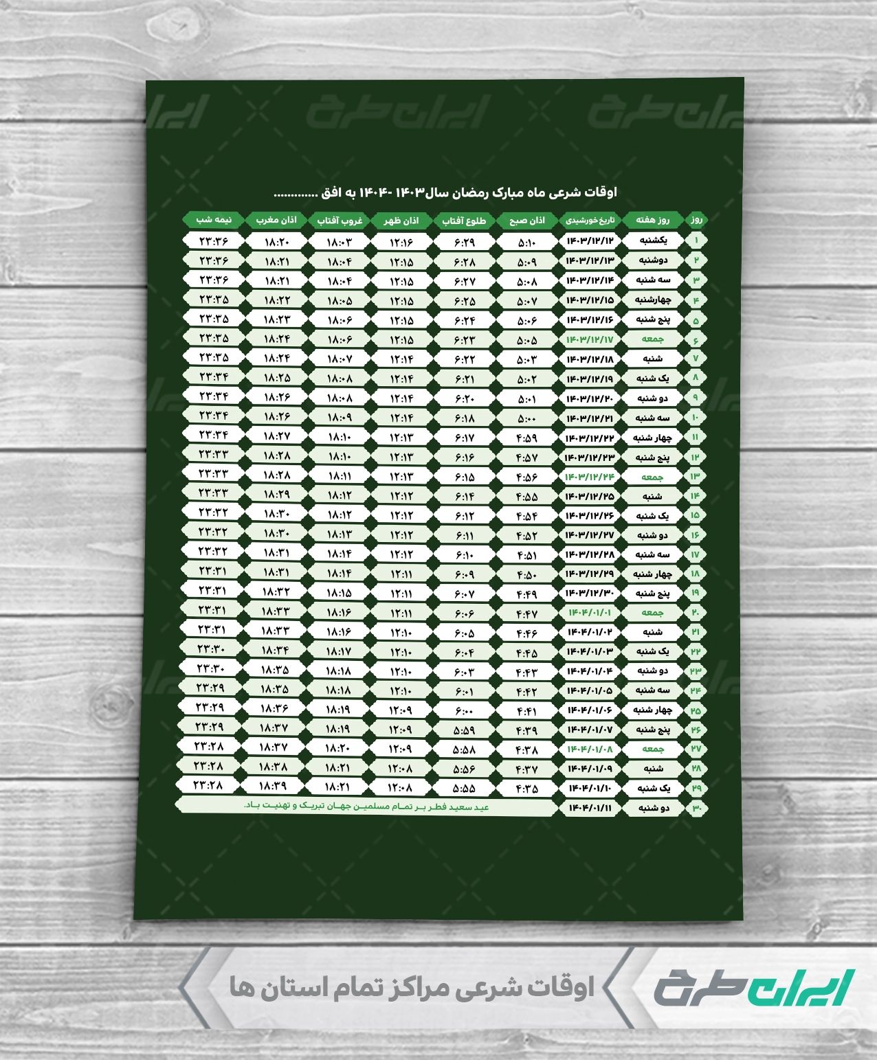 مشخصات فنی طرح اوقات شرعی ماه رمضان