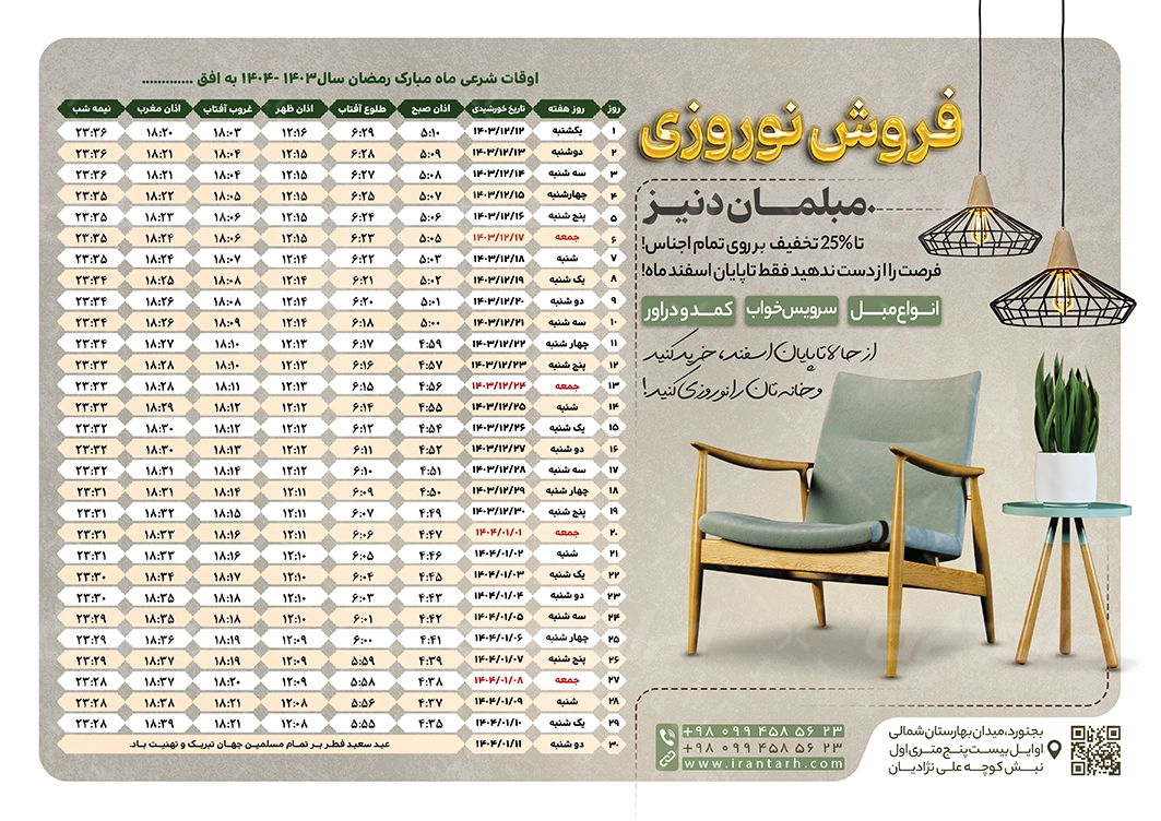 طرح جدول اوقات شرعی ماه رمضان 1403 مبل فروشی